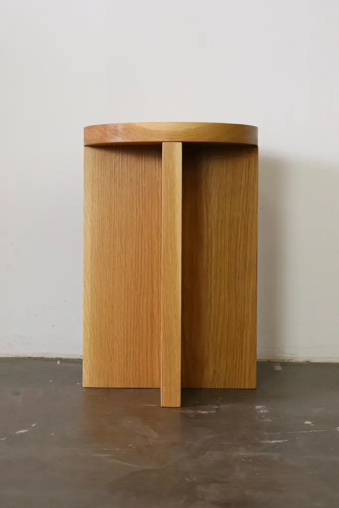 Solid wood stool / side table in white oak with round top. With a clean and minimal design, these stools are handmade in Portland, Oregon with mortise and tenon joinery in Material's workshop. Also available with a square top, in a number of wood species.
