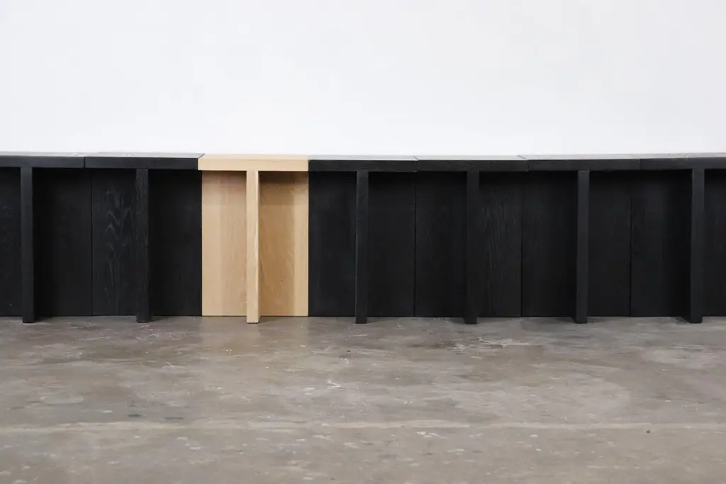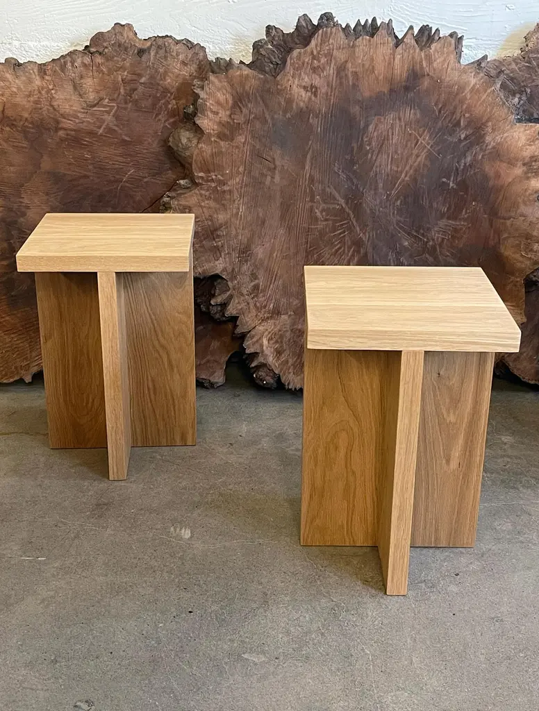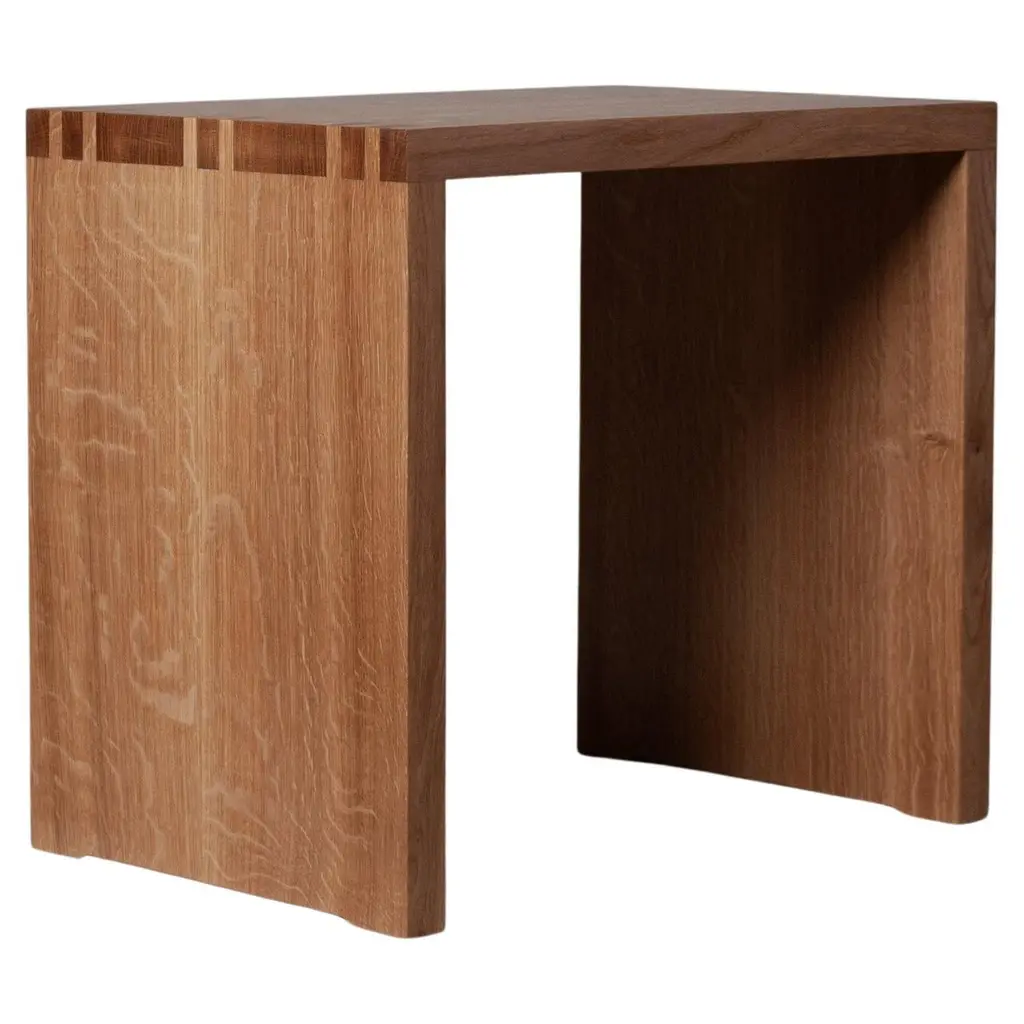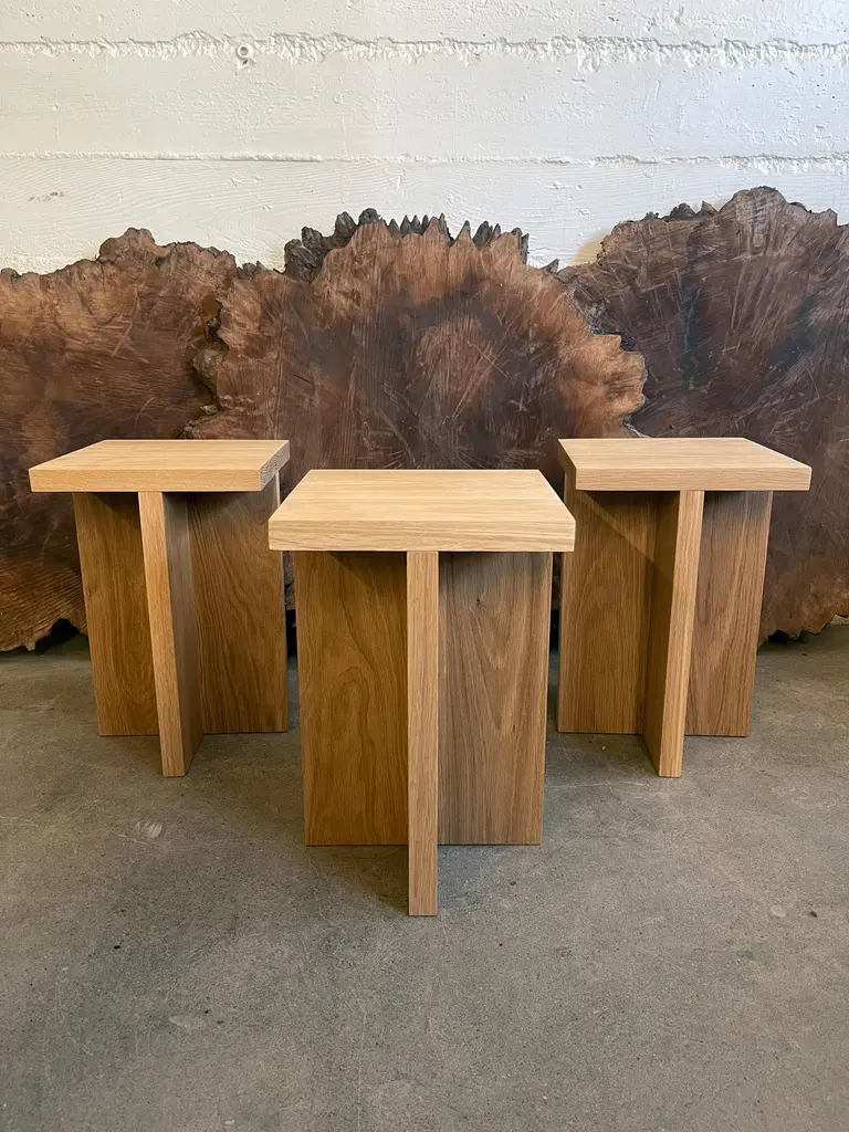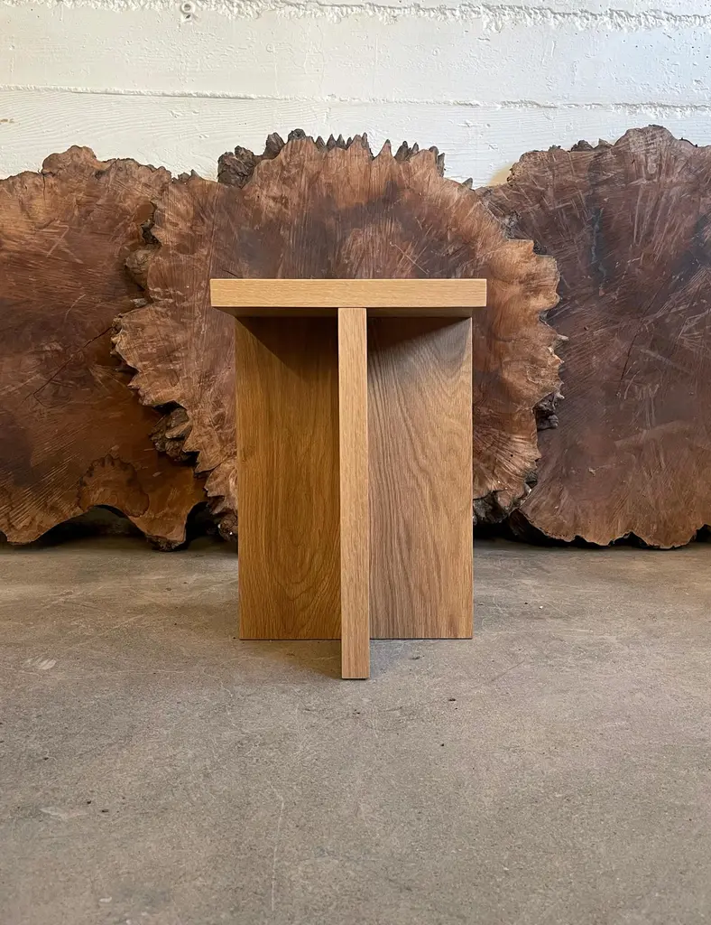 Solid wood stool / side table in white oak with square top. With a clean and minimal design, these stools are handmade in Portland, Oregon with mortise and tenon joinery in Material's workshop. Also available with a square top, in a number of wood species.