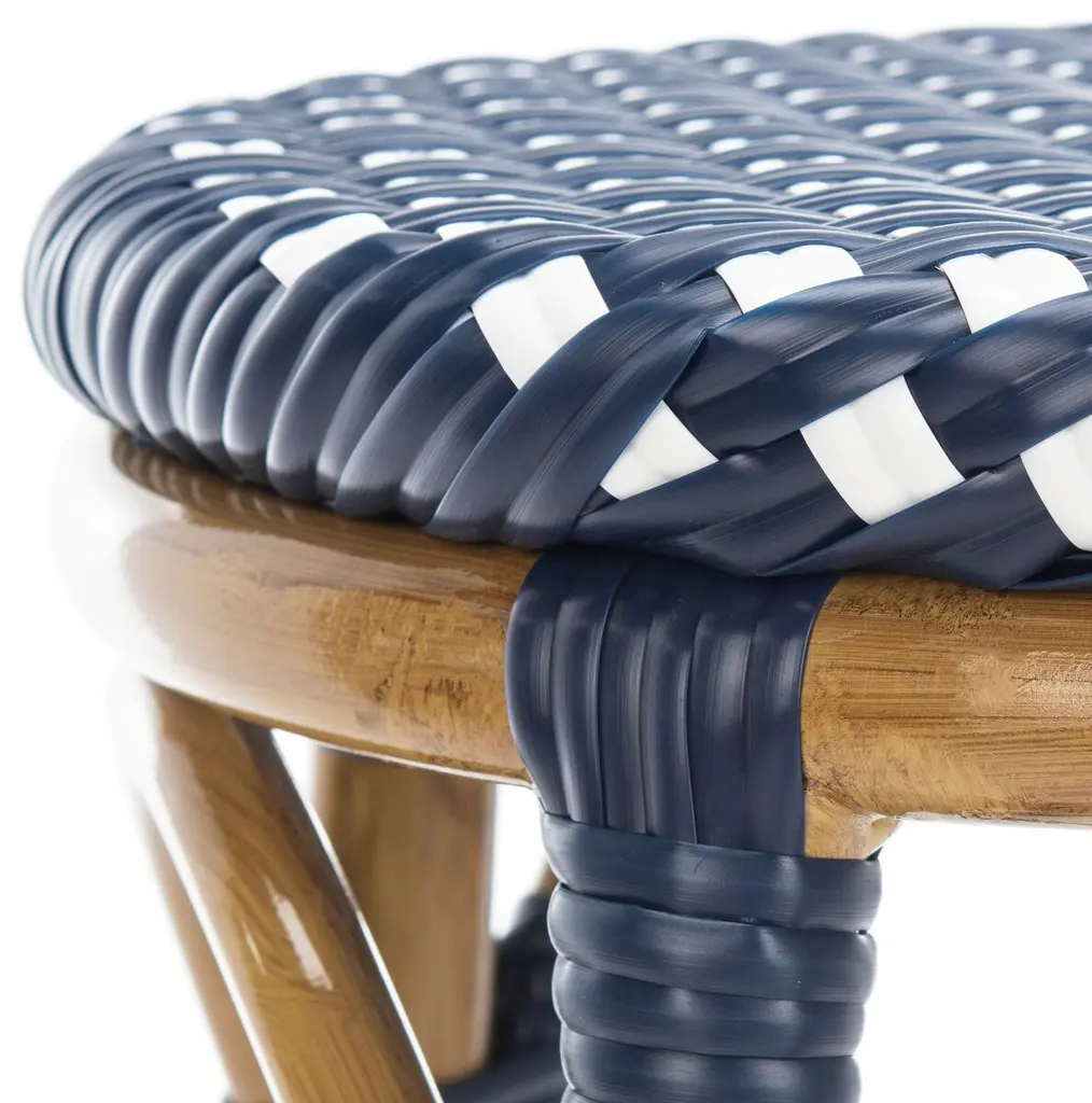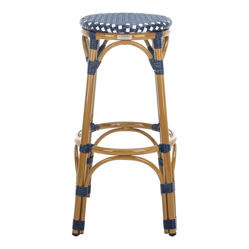 Cool, casual, and a practical addition to any indoor or outdoor space, this breezy, bistro-style stool is crafted of aluminum in a bamboo-inspired design with a woven seat and reinforced joints wrapped in all-weather cord made to resemble wicker.