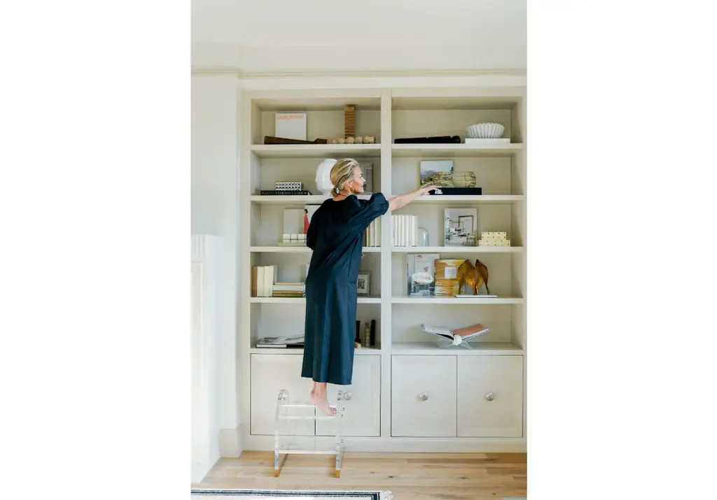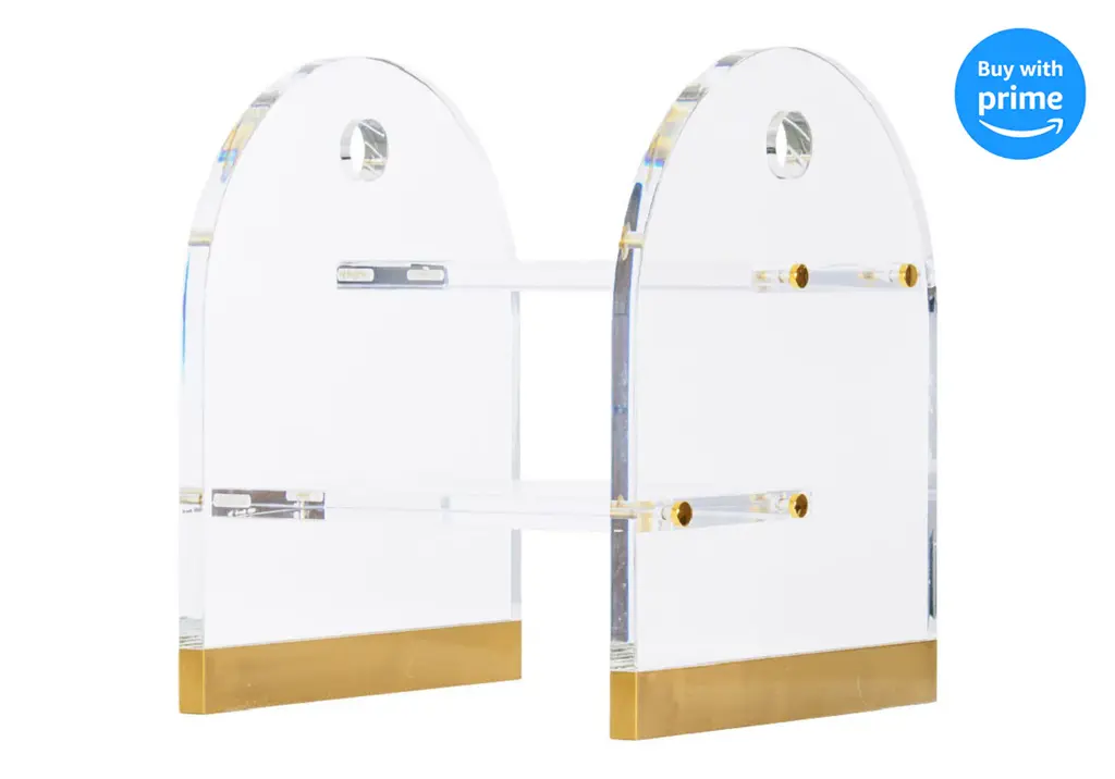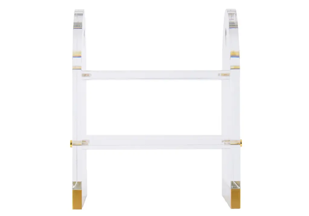 This step stool is the ideal balance of function and sophistication. Its beautifully rounded acrylic form, complemented by brass capped feet and matching hardware, blends seamlessly into closets and pantries. Its elegant design styles effortlessly for a timeless, elevated look.