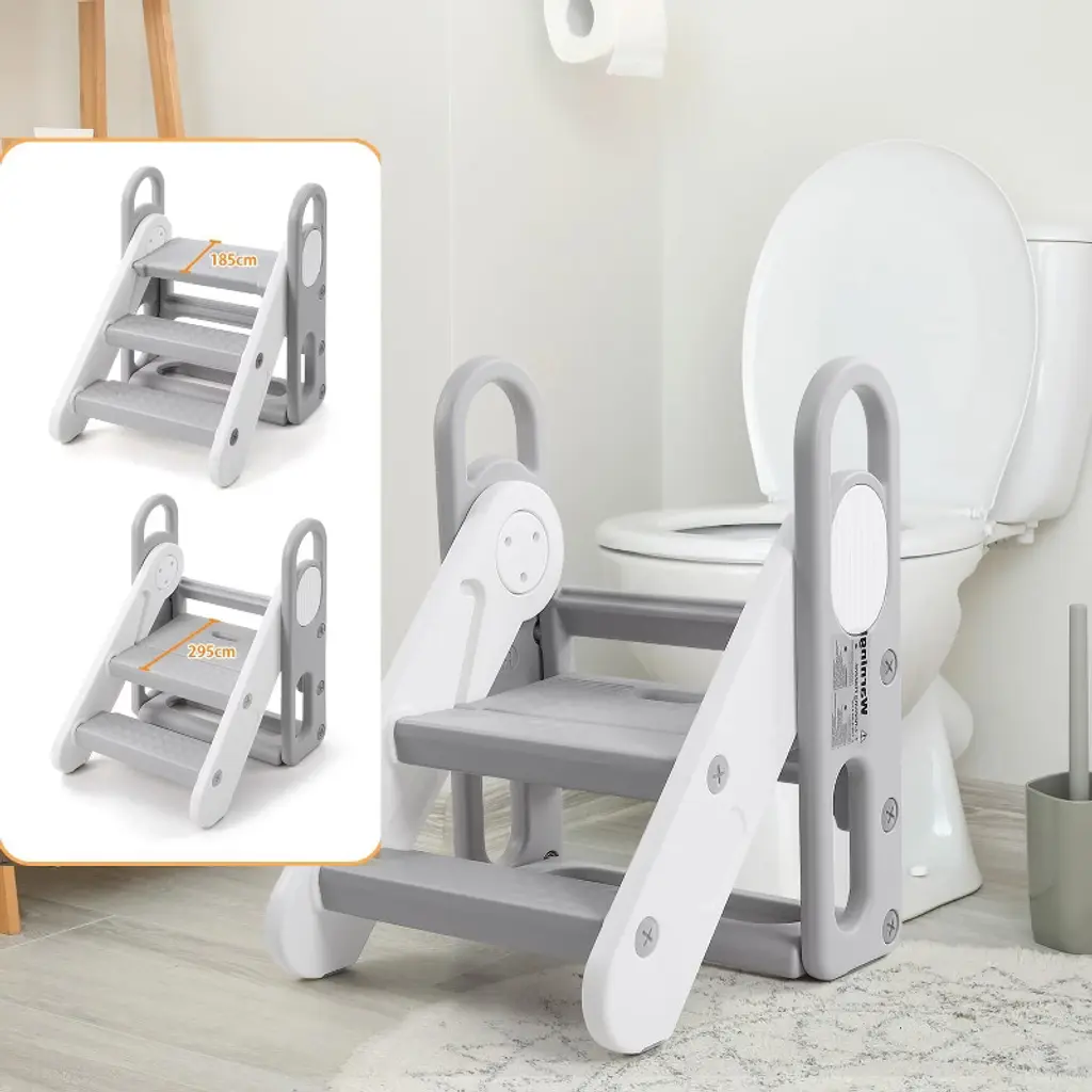 Odk Foldable 3 Steps Stool For Toddlers, Folding Step Ladder, Adjustable Kids Step Stool For Bathroom Sink, Kitchen, Bed, Anti-slip Baby Step Ladder