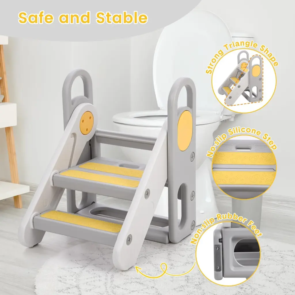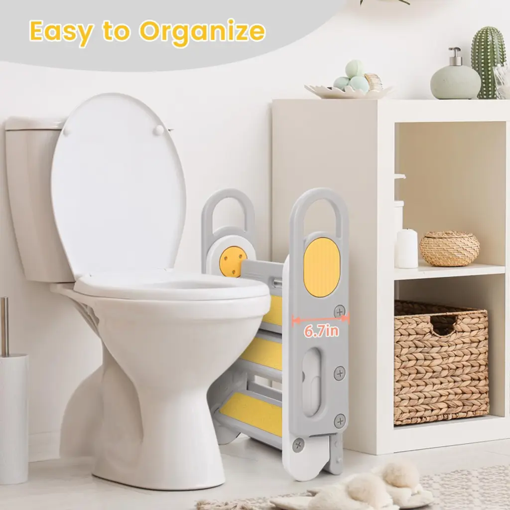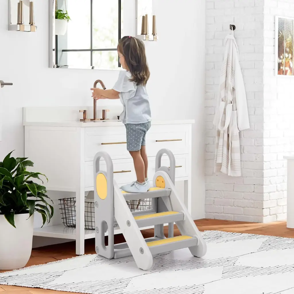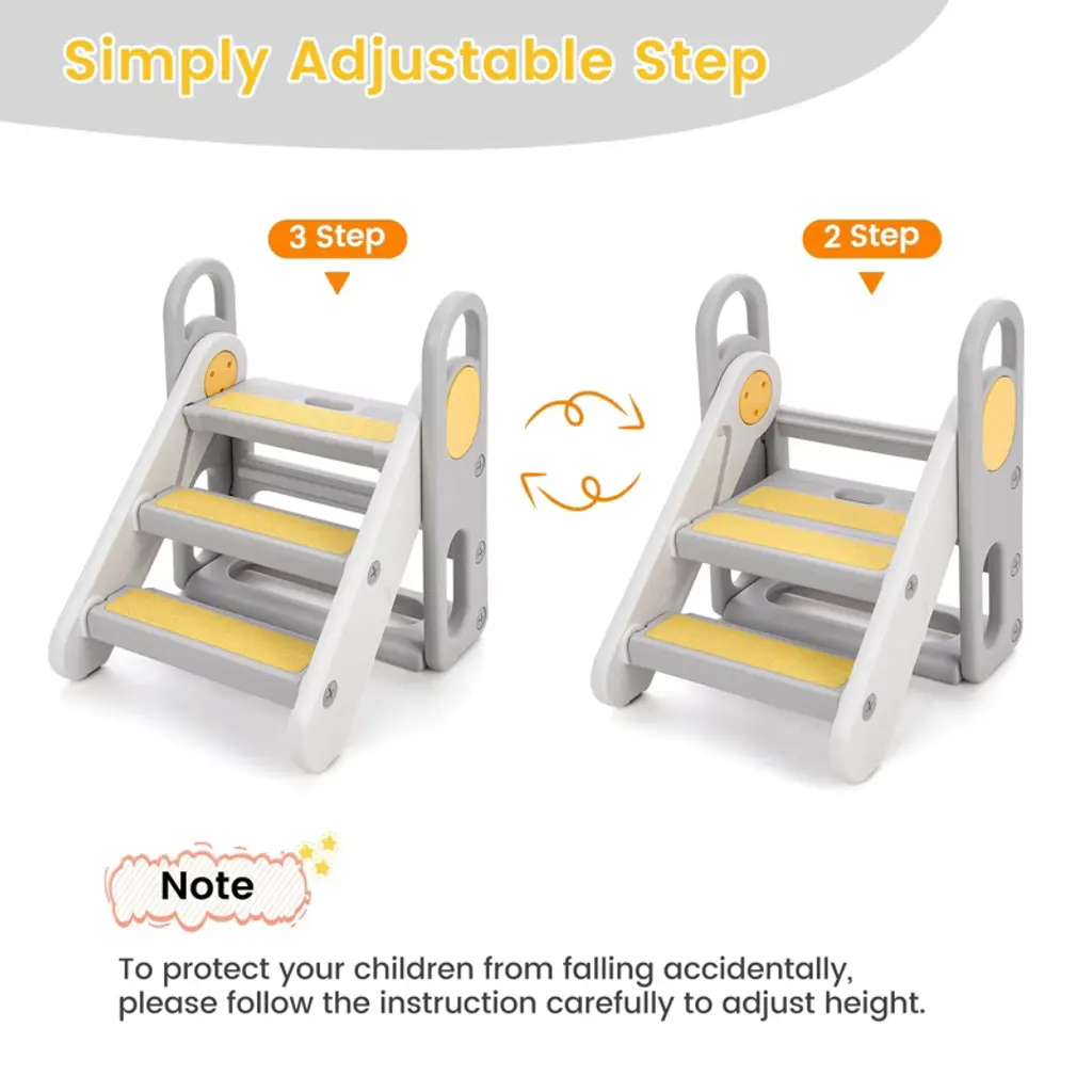 Odk Foldable 3 Steps Stool For Toddlers, Folding Step Ladder, Adjustable Kids Step Stool For Bathroom Sink, Kitchen, Bed, Anti-slip Baby Step Ladder