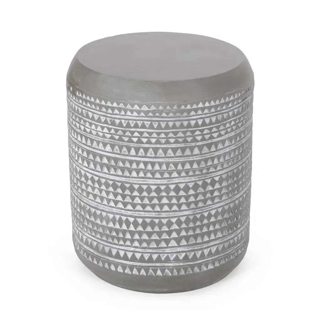 Okak Minimalist Lightweight Concrete Outdoor Side Table Indoor End Tables, Decorative Garden Accent Table Stools For Yard Balcony Patio, White