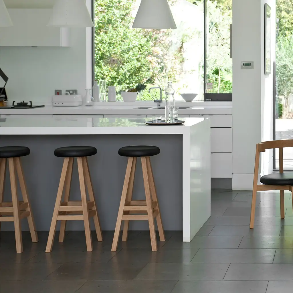 Featuring Japanese craftsmanship and contemporary European design, the Oki-Nami Stool from Case Furniture is an exquisite piece that will bring sophistication to any space. Crafted from solid wood, this stool features an angled profile, matchstick legs, and a soft leather seat pad for an elegant touch of comfort. Highlights