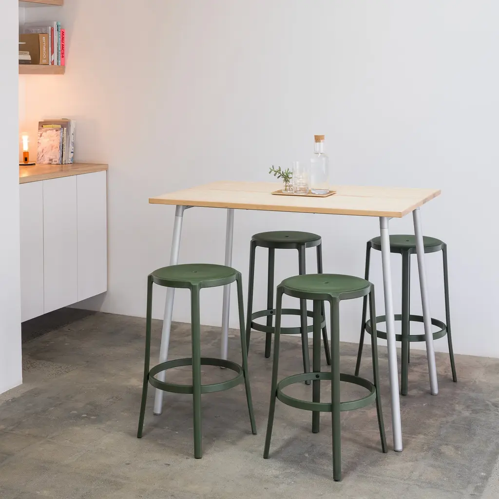 Emeco and Barber & Osgerby introduce “On & On”, a collection of chairs and stools that breaks new ground with a circular way of thinking, combining longevity of design, durability, and the use of recycled materials that can be recycled again – on and on. The starting point for our collaboration was the next generation of a simple and timeless café chair, engineered for strength and designed specifically with recycling in mind. Together, Emeco and Barber & Osgerby have created a collection of chairs and stools that are physically and visually lightweight, yet extremely strong and durable, making them suitable for both demanding commercial environments and domestic use, indoors and out. Features