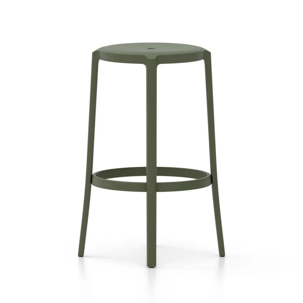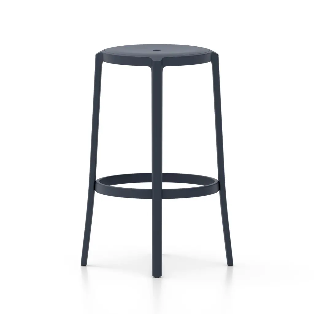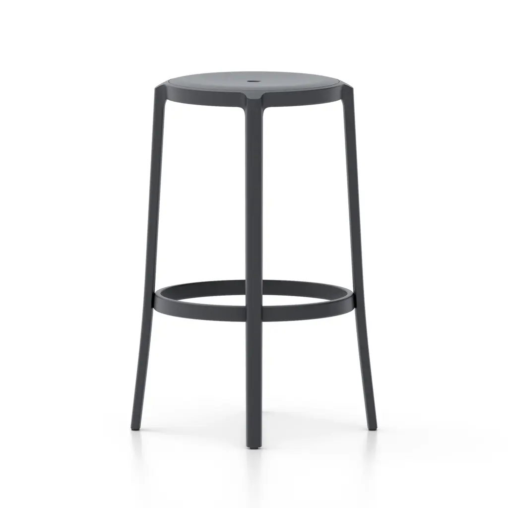 Emeco and Barber & Osgerby introduce “On & On”, a collection of chairs and stools that breaks new ground with a circular way of thinking, combining longevity of design, durability, and the use of recycled materials that can be recycled again – on and on. The starting point for our collaboration was the next generation of a simple and timeless café chair, engineered for strength and designed specifically with recycling in mind. Together, Emeco and Barber & Osgerby have created a collection of chairs and stools that are physically and visually lightweight, yet extremely strong and durable, making them suitable for both demanding commercial environments and domestic use, indoors and out. Features