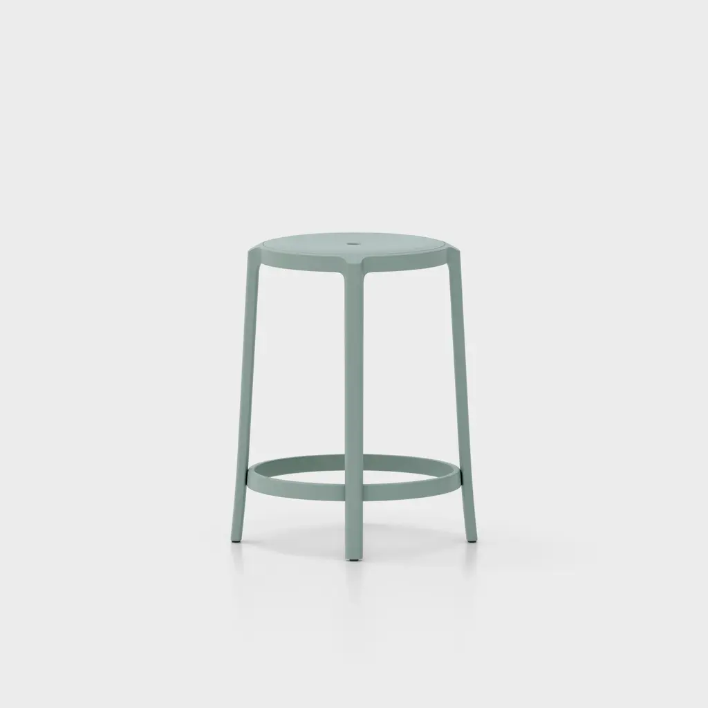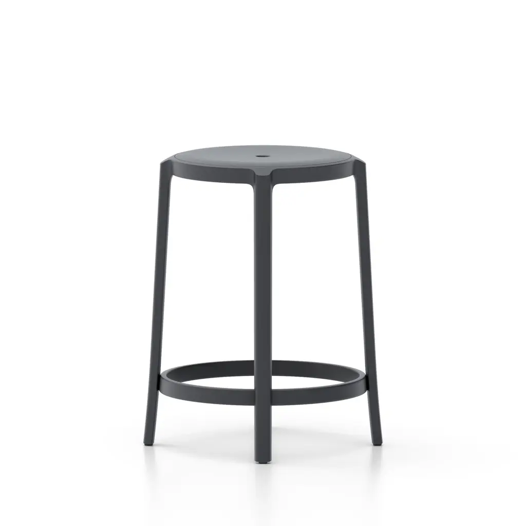 Emeco and Barber & Osgerby introduce “On & On”, a collection of chairs and stools that breaks new ground with a circular way of thinking, combining longevity of design, durability, and the use of recycled materials that can be recycled again – on and on. The starting point for our collaboration was the next generation of a simple and timeless café chair, engineered for strength and designed specifically with recycling in mind. Together, Emeco and Barber & Osgerby have created a collection of chairs and stools that are physically and visually lightweight, yet extremely strong and durable, making them suitable for both demanding commercial environments and domestic use, indoors and out. Features