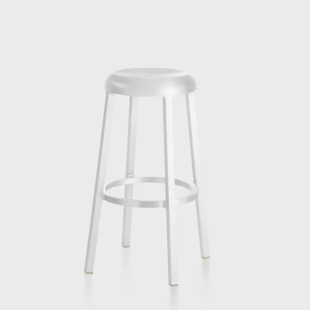 Combining longevity of design, durability, and the use of recycled materials, Emeco has created the On & On Upholstered Stool, a truly revolutionary seating design that can be recycled again – on and on. Looking to create the next generation of simple and timeless café chairs, engineered for strength and designed specifically with recycling in mind, Emeco and Barber & Osgerby created a stool that is physically and visually lightweight, yet extremely strong and durable. Suitable for both demanding commercial environments and domestic use, indoors and out, this stool is crafted in the United States from recycled plastic reinforced with fiberglass for endless strength and lasting beauty. Features