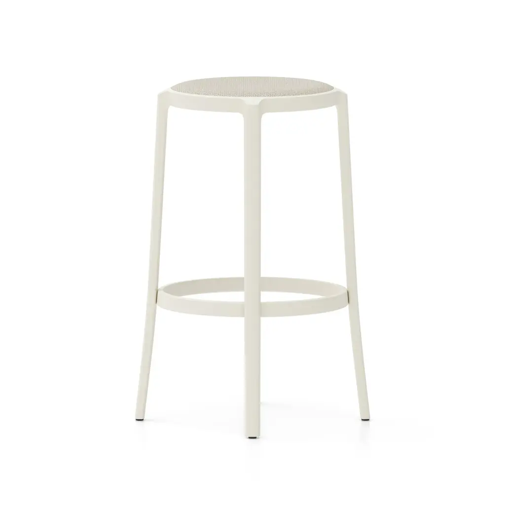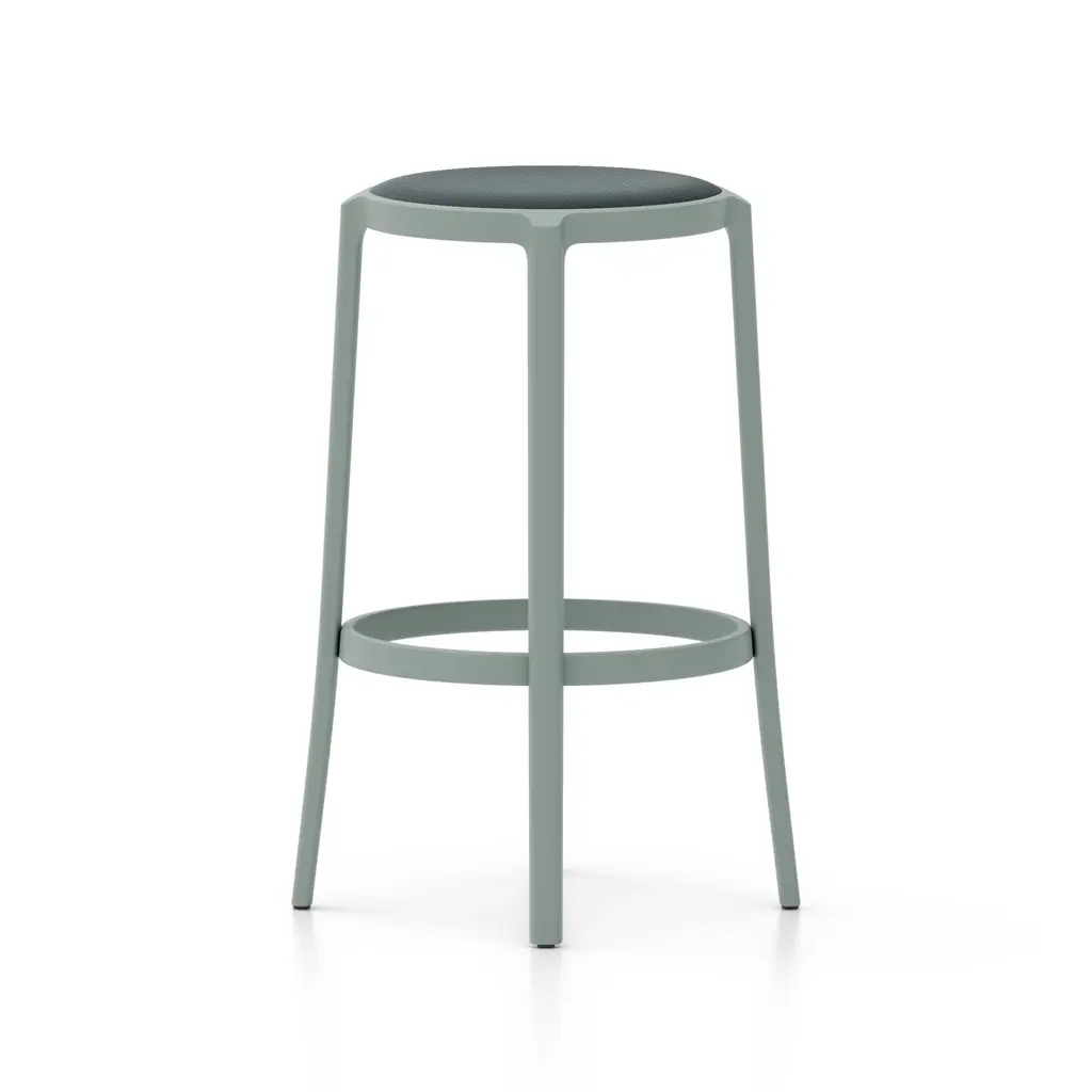 Combining longevity of design, durability, and the use of recycled materials, Emeco has created the On & On Upholstered Stool, a truly revolutionary seating design that can be recycled again – on and on. Looking to create the next generation of simple and timeless café chairs, engineered for strength and designed specifically with recycling in mind, Emeco and Barber & Osgerby created a stool that is physically and visually lightweight, yet extremely strong and durable. Suitable for both demanding commercial environments and domestic use, indoors and out, this stool is crafted in the United States from recycled plastic reinforced with fiberglass for endless strength and lasting beauty. Features
