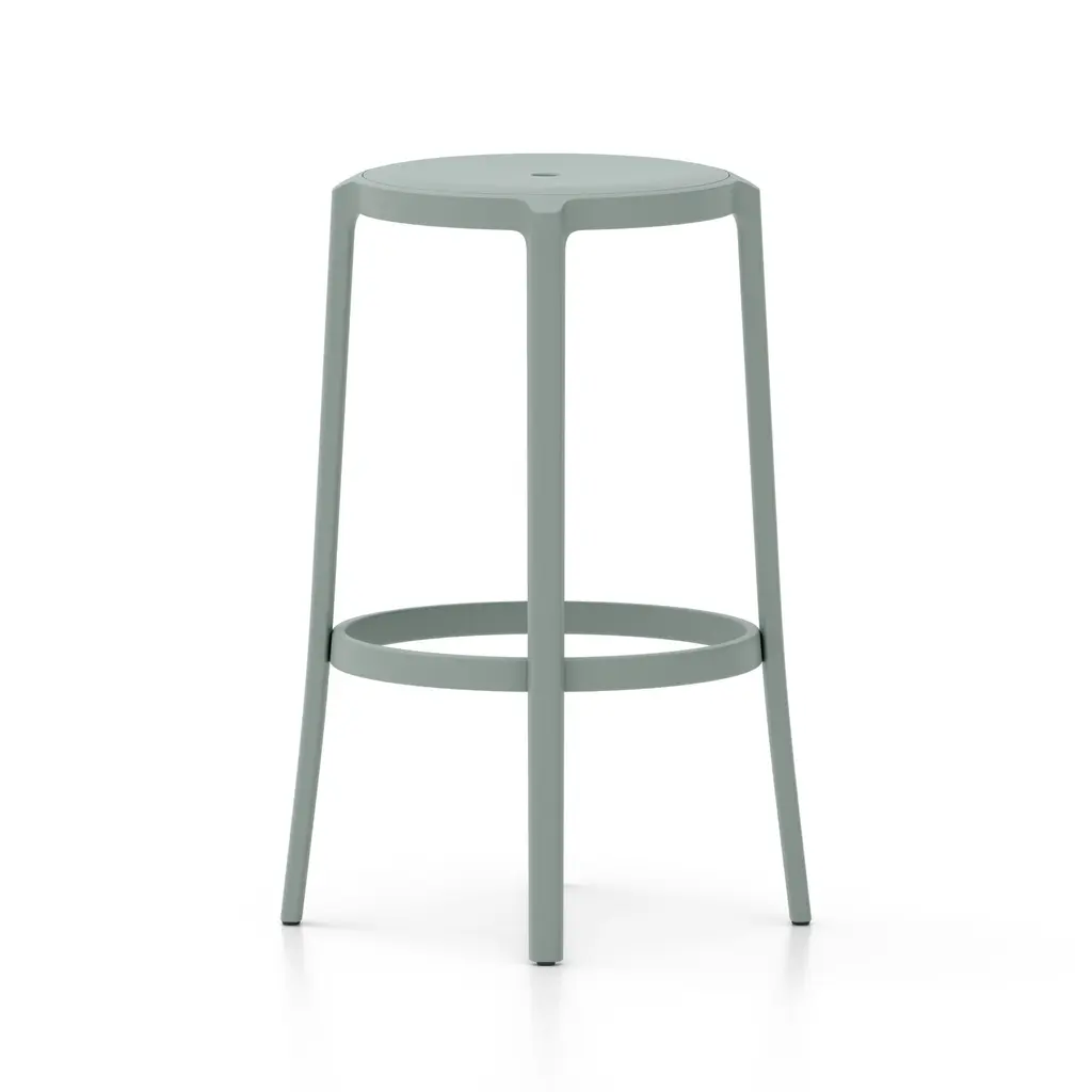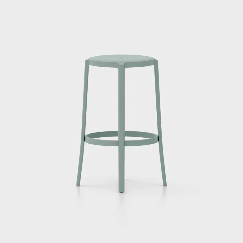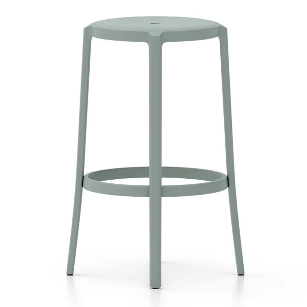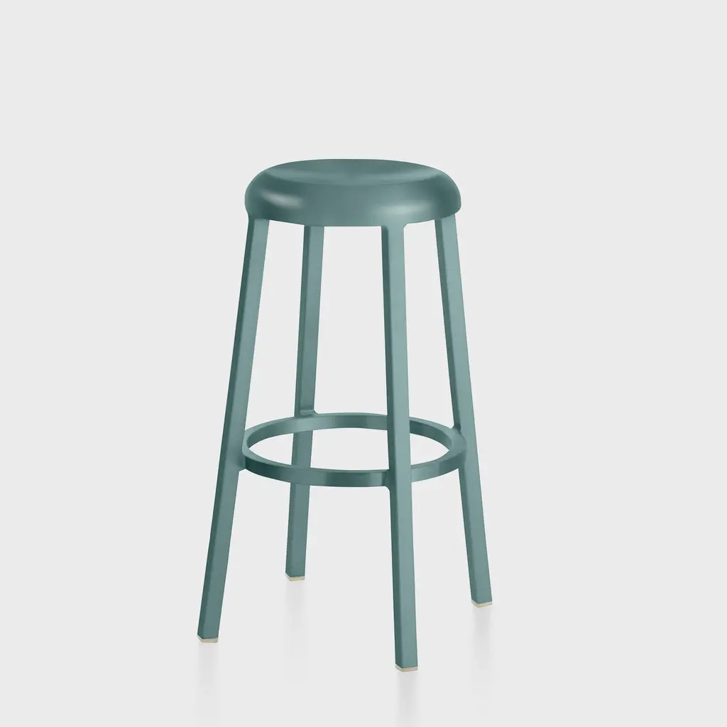 Combining longevity of design, durability, and the use of recycled materials, Emeco has created the On & On Upholstered Stool, a truly revolutionary seating design that can be recycled again – on and on. Looking to create the next generation of simple and timeless café chairs, engineered for strength and designed specifically with recycling in mind, Emeco and Barber & Osgerby created a stool that is physically and visually lightweight, yet extremely strong and durable. Suitable for both demanding commercial environments and domestic use, indoors and out, this stool is crafted in the United States from recycled plastic reinforced with fiberglass for endless strength and lasting beauty. Features