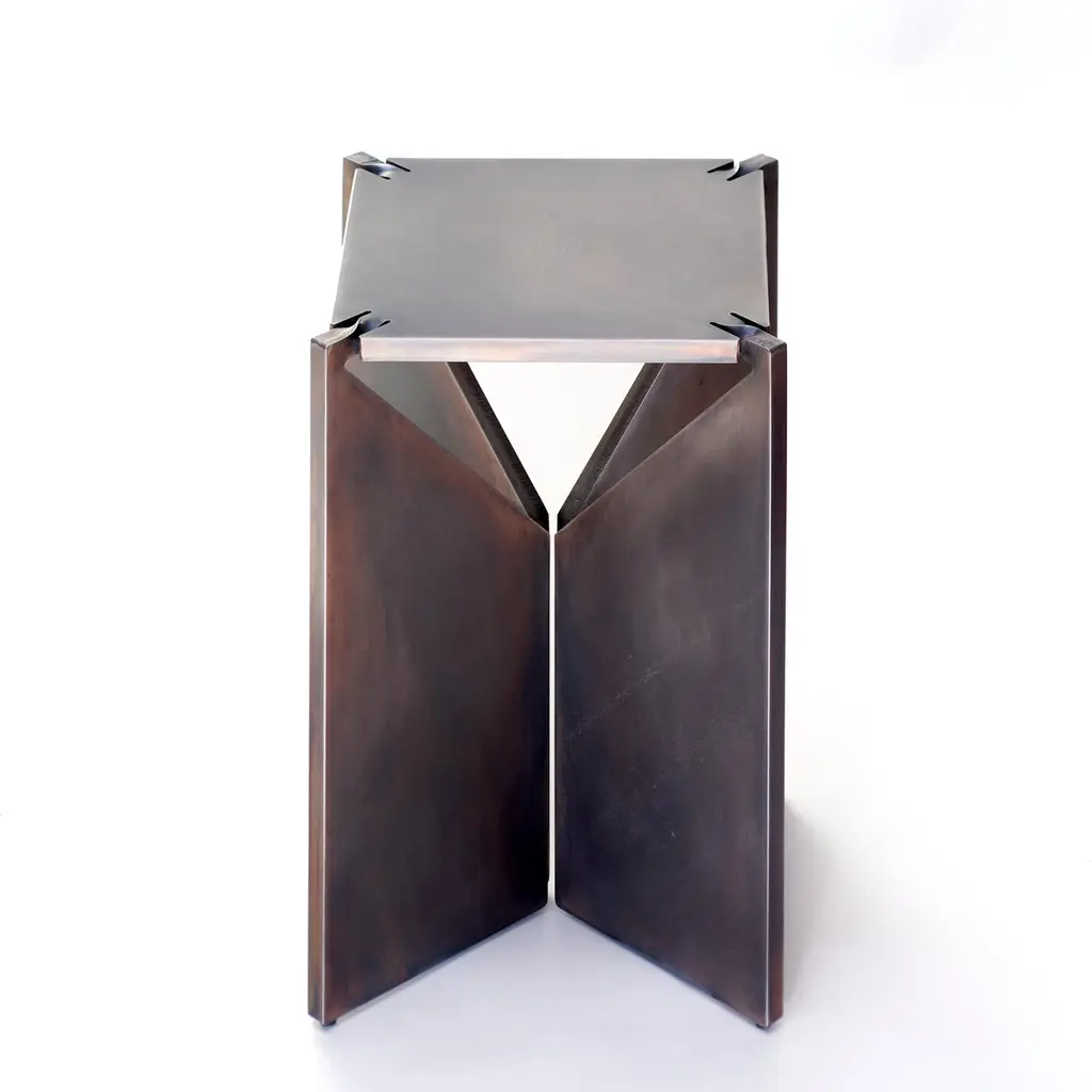 Introducing the ONE Square Stool, a testament to simplicity and strength within the ONE family. Crafted from a single sheet of metal, it undergoes a transformative journey from a flat surface to a dynamic three-dimensional form, echoing the resilience and artistry of traditional forging techniques merged seamlessly with modern design sensibilities.Each curve and contour of the ONE Square Stool reflects the raw power and elegance of stainless steel, exuding a sculptural quality that captivates the eye and invigorates any space it inhabits. It is the embodiment of minimalist sophistication, commanding attention with its unassuming yet commanding presence—a true testament to the concept of 'brutal elegance.'Available in three distinct finishes—Brushed Stainless Steel, Warm Grey Patina, and Vivacious Patina—each option accentuates the stool's inherent beauty and durability. The polished outer edges add a touch of refinement, elevating its visual appeal to a level of understated luxury.The ONE Square Stool: where simplicity meets strength, and artistry meets functionality—a timeless addition to any design aficionado's collection.