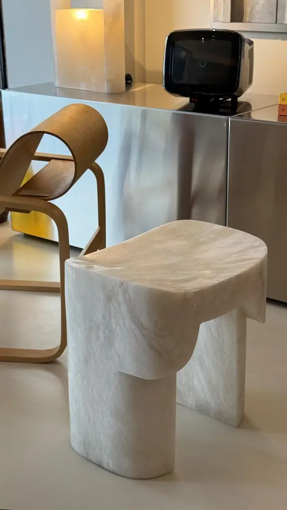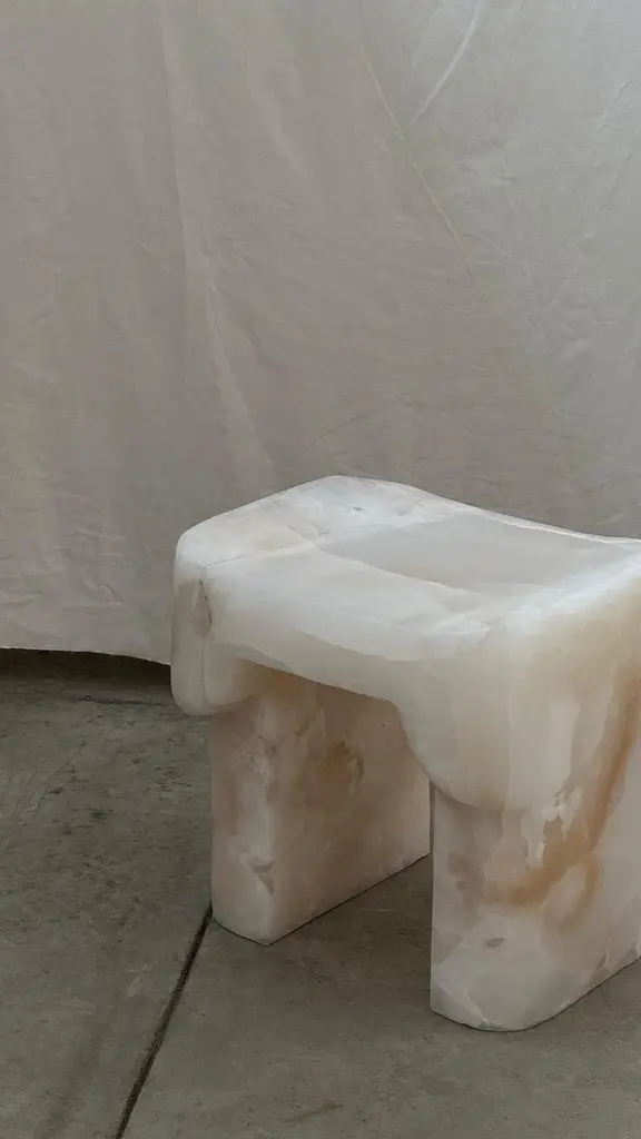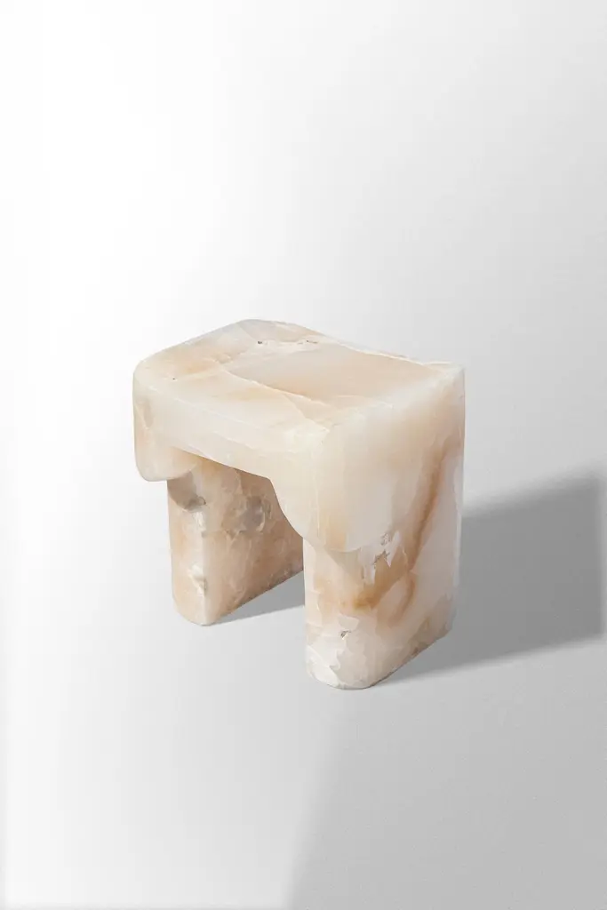 Organic Form, Contemporary Natural White Onyx Stool By Henry Wilson