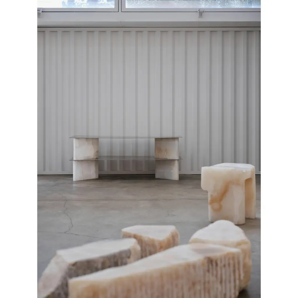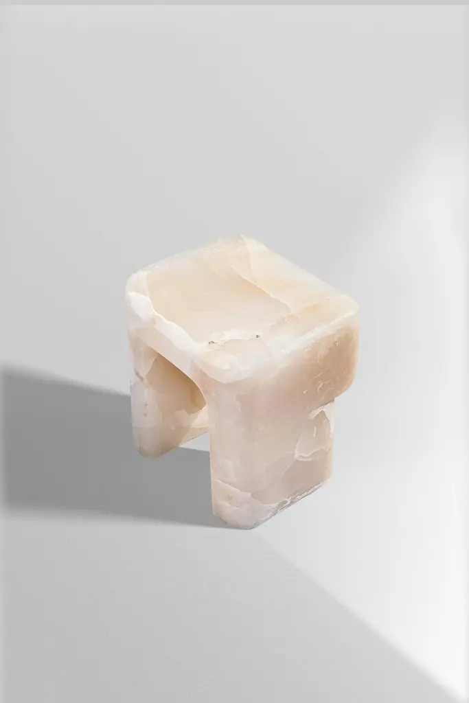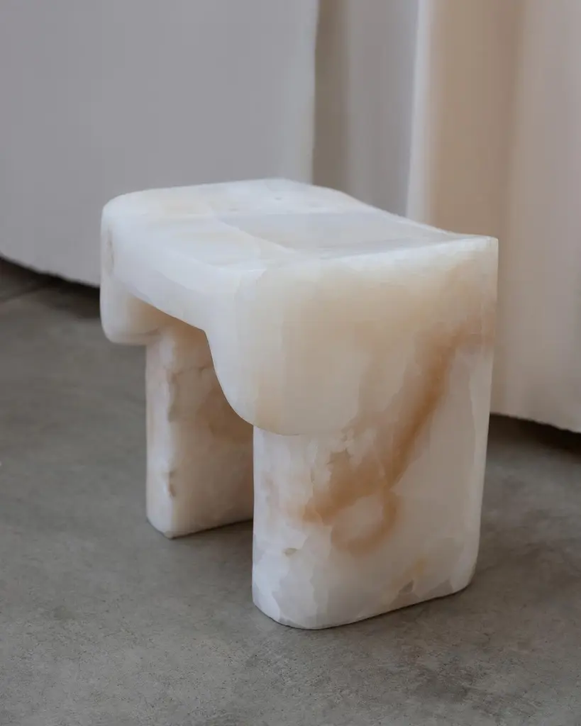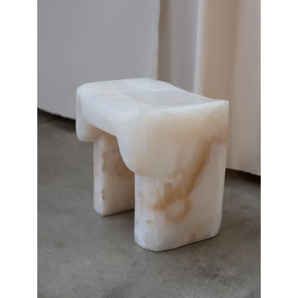 White Onyx Stool by Henry WilsonLimited Edition Of 8 PiecesDimensions: D 67,5 x W 61,5 x H 62,5 cm.Materials: White onyx.Henry Wilson's work combines a rational, democratic utility with an element of sculptural expression. There is a clear form and function in our products, but it’s important they also have feeling. We are interested in the awkward beauty that comes from something made by hand. We like to explore how imperfection can be introduced into an Industrial process, to make something at scale that retains a sense of individual charm.