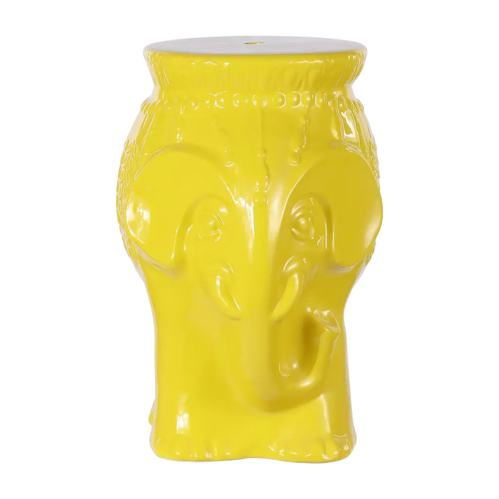 Your favorite mid-century ceramic elephant stool is back with a modern, Bohemian flair. Use it indoors or outdoors as a cocktail table, garden seat, or plant stand. This charming accent table is perfect for the living room, bedroom, bathroom, or porch. 18.5" high.