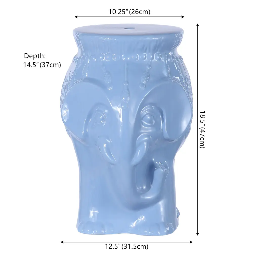 Your favorite mid-century ceramic elephant stool is back with a modern, Bohemian flair. Use it indoors or outdoors as a cocktail table, garden seat, or plant stand. This charming accent table is perfect for the living room, bedroom, bathroom, or porch. 18.5" high.