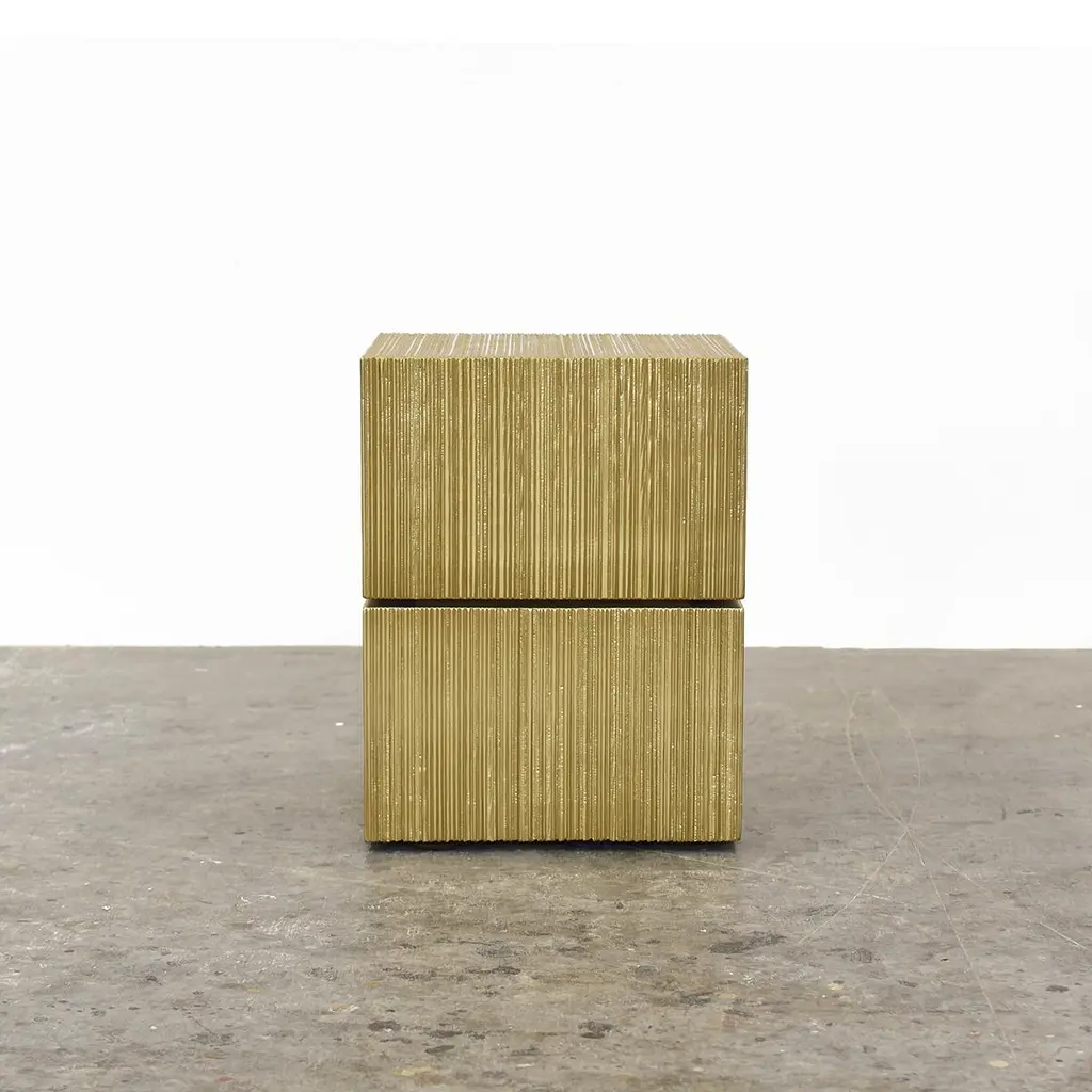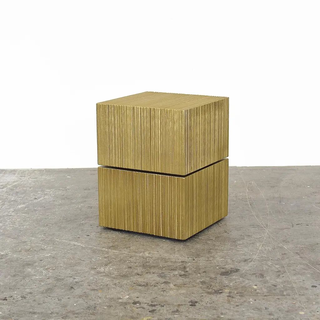 ORO - OS1 stool by John Eric ByersORO collectionDimensions: 38 x 38 x 51 cmMaterials: maple hardwood + gold metallic lacquerHand shaped + hand textured + hollow core stacked laminationJohn Eric Byers creates geometrically inspired pieces that are minimal, emotional, and modernly refined.John's individually handmade work is guided by purity in form, surface texture, structure, and respect for use of materials. Heralded as a leading American artist working in wood, permanent collections include the Smithsonian American Art Museum, the Philadelphia Museum of Art and the Museum of Arts and Design in NYC. Numerous awards include a Louis Comfort Tiffany Foundation Award, New York Foundation of the Arts Awards, and inclusion in the Smithsonian's Oral Archives of American Arts.