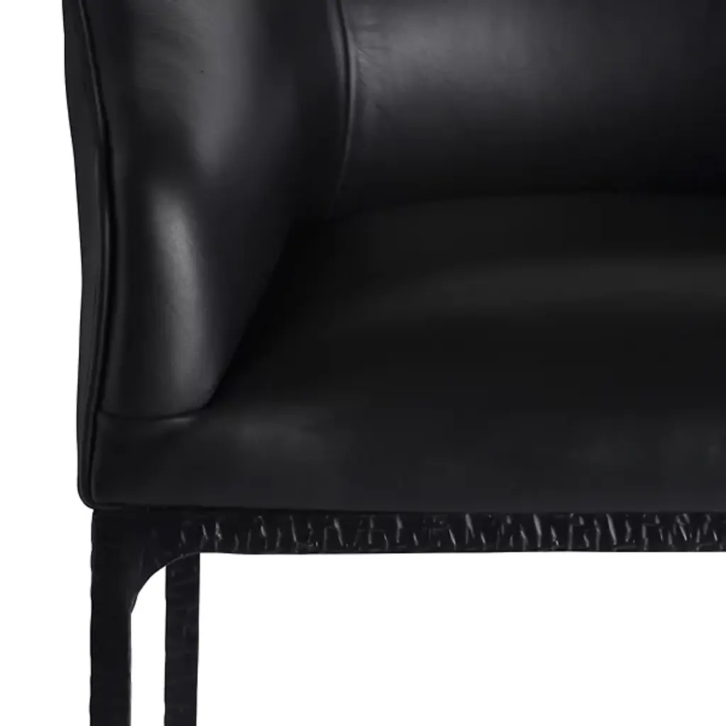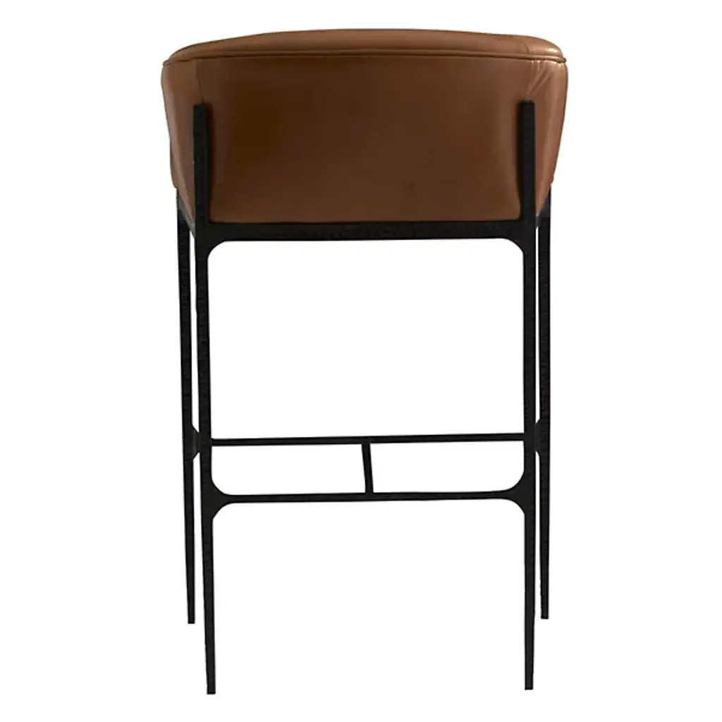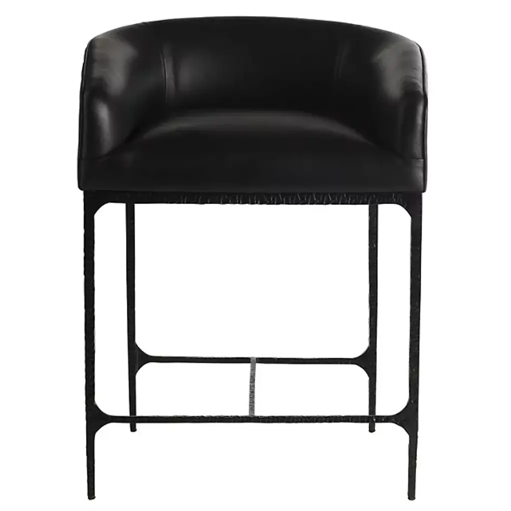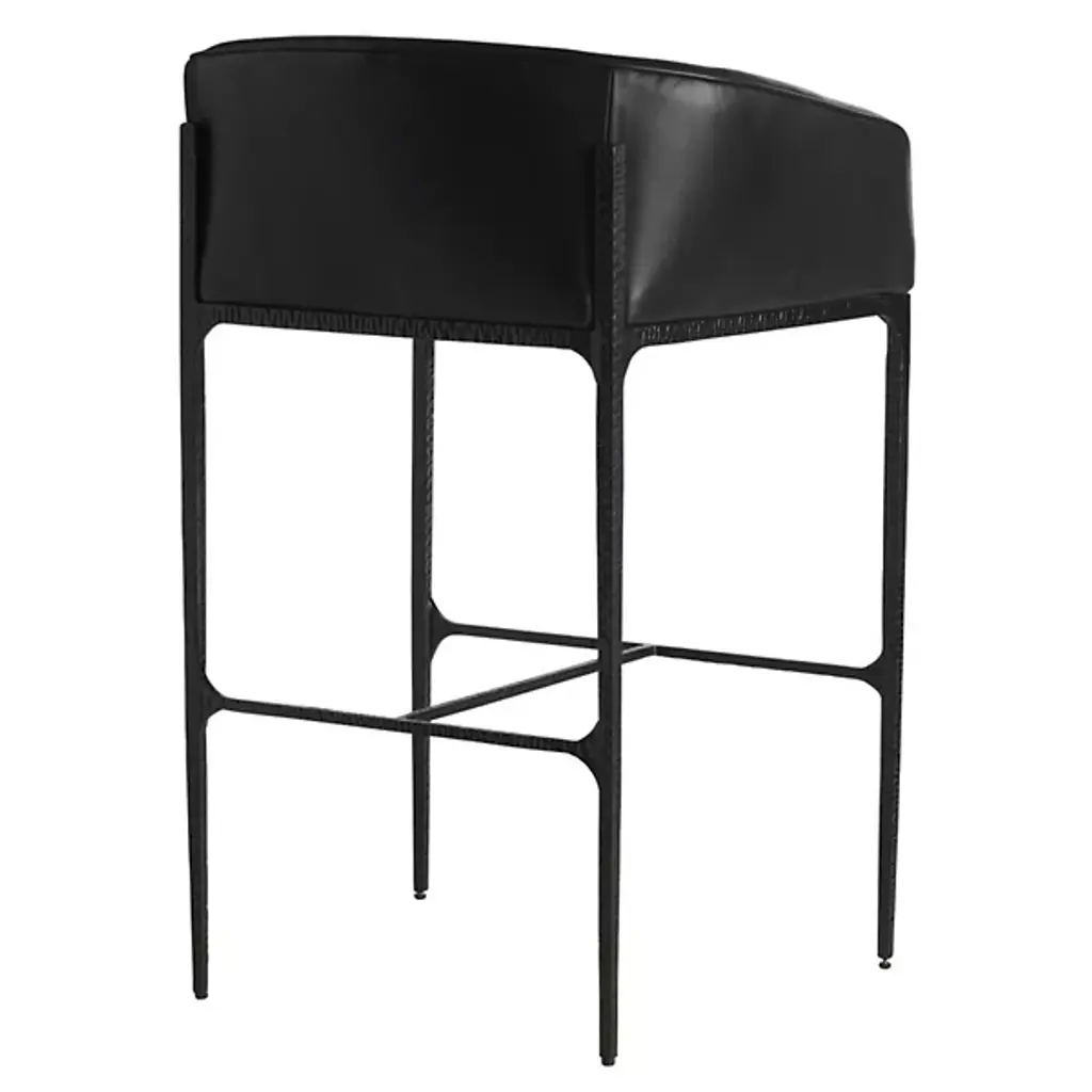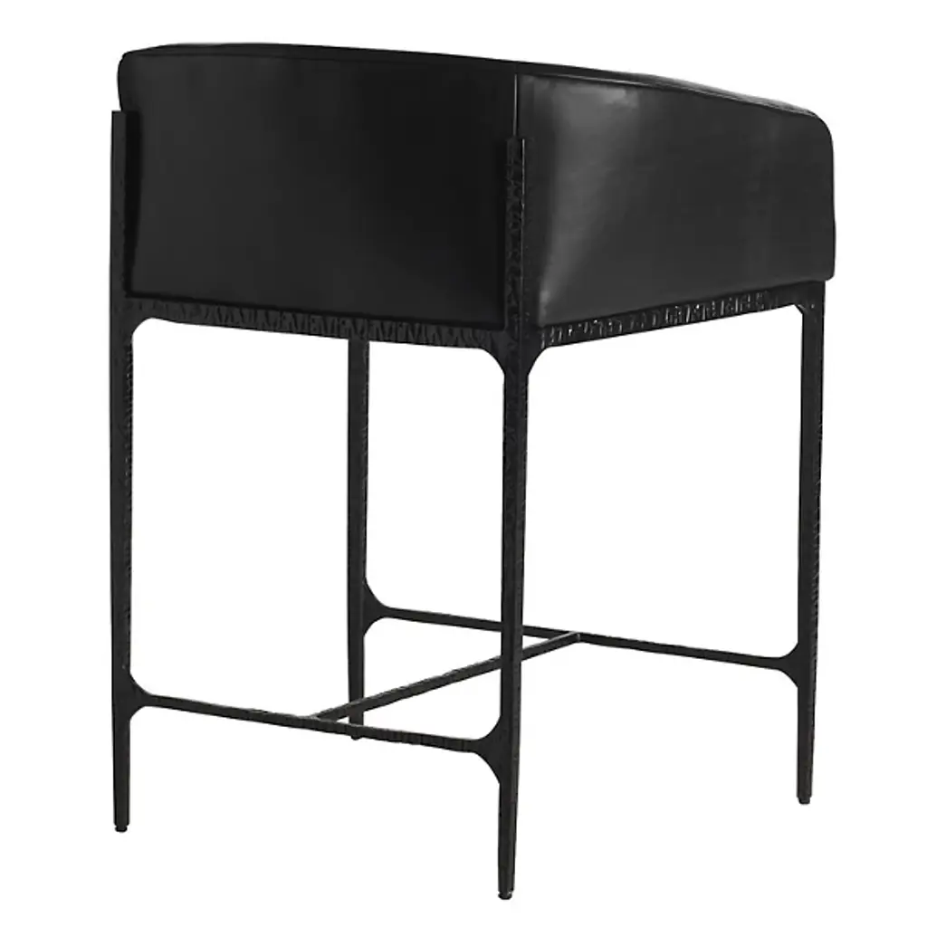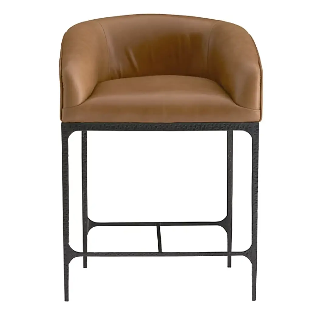 Complement your gathering spaces' polished look while nestling comfortably inside the Osbourne Stool from Arteriors. This modern design delights with a chic style. A slender iron frame rises with a fascinating hand-hammered surface texture. This frame provides a generous footrest. On top, an upholstered seat pleases the lower body with generous cushioning. A low lumbar support gives one a restful hugging sensation. The leather accentuates this piece's time-honored while providing a familiar smooth feel.