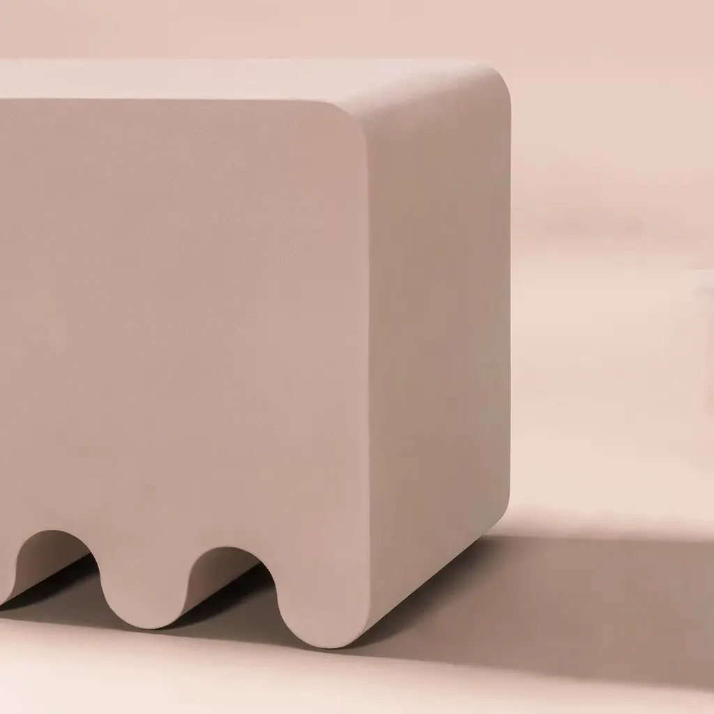 An iconic piece from the Ossicle Collection of benches, seats, and tables, this pink stool is characterized by a sleek and harmonious silhouette outlined by a waved base. Inspired by the pieces used in the Ancient Greek and Roman game "Jeu des Osselets", it can be paired with others from this series for a balanced and cohesive look in a modern interior. Its pure geometry is completed with a fine leather upholstery. Customizable in size upon request, please contact the Concierge for details.