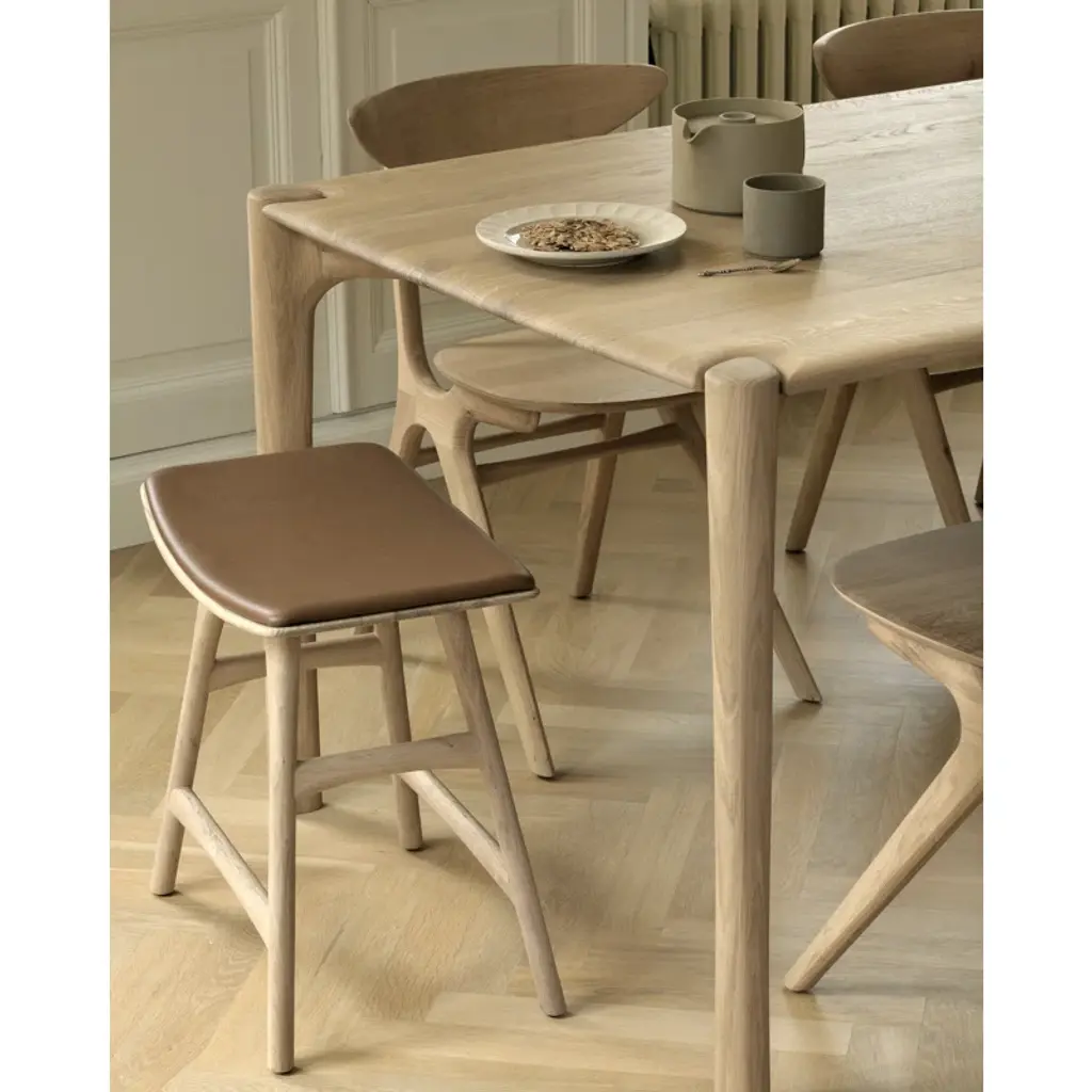 Osso is one of Ethnicraft's most popular designs because of its versatility. This oak stool offers comfortable seating in your dining room and is also great by itself against a wall, or next to a sofa. This version features a cushion for extra comfort.