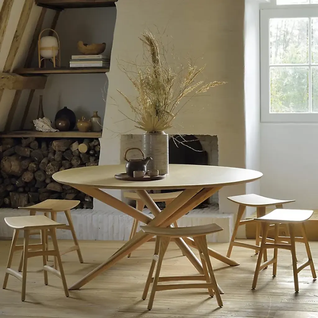 The Osso Dining Stool designed by Grain & Green is part of the famous Ethnicraft Osso Collection. Inspired by Asian cultures and tradition, the stool showcases rounded curved edges and enhance form without compromising functionality. The Osso Round Table is a great piece to pair with the Osso Dining Stool.