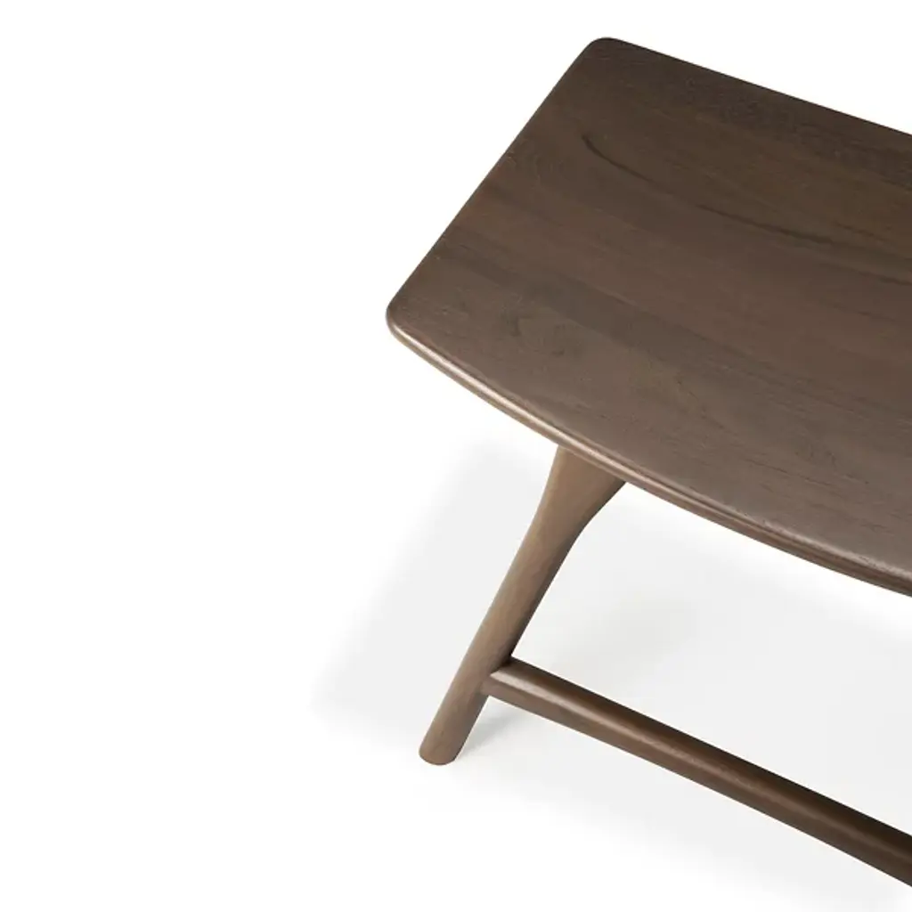 Elevate your space with the Osso Low Stool by Ethnicraft, a tribute to nature’s symmetrical grace. Crafted with meticulous care, this stool boasts a flowing form defined by four tapered legs that gracefully converge toward a gently concave rectangular seat, ideal for indoor living spaces. An underside groove subtly vanishes from view while facilitating effortless mobility. The seat is FSC-certified, signifying responsible teak harvesting, making this versatile stool a stylish addition replete with environmental ethics as much as smooth inspired design.
