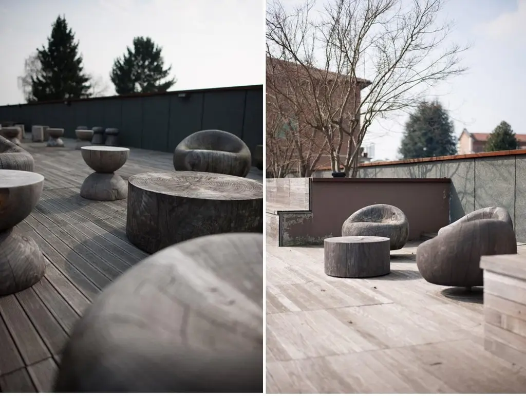 Outdoor Set Vulcano Cedarwood Stool/side Table By Marc Sadler For Riva1920