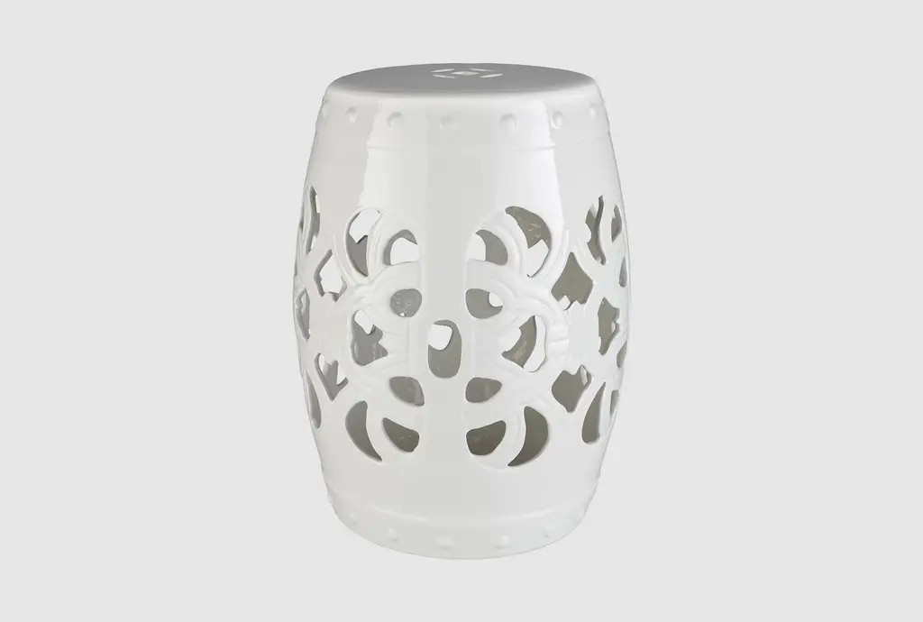 This Outdoor White Ceramic Garden Stool is a traditional style fiber stool that comes in a clean white color. Made of durable ceramic and porcelain, this stool is perfect for any garden or outdoor space. This patio piece will elevate your outdoor space.