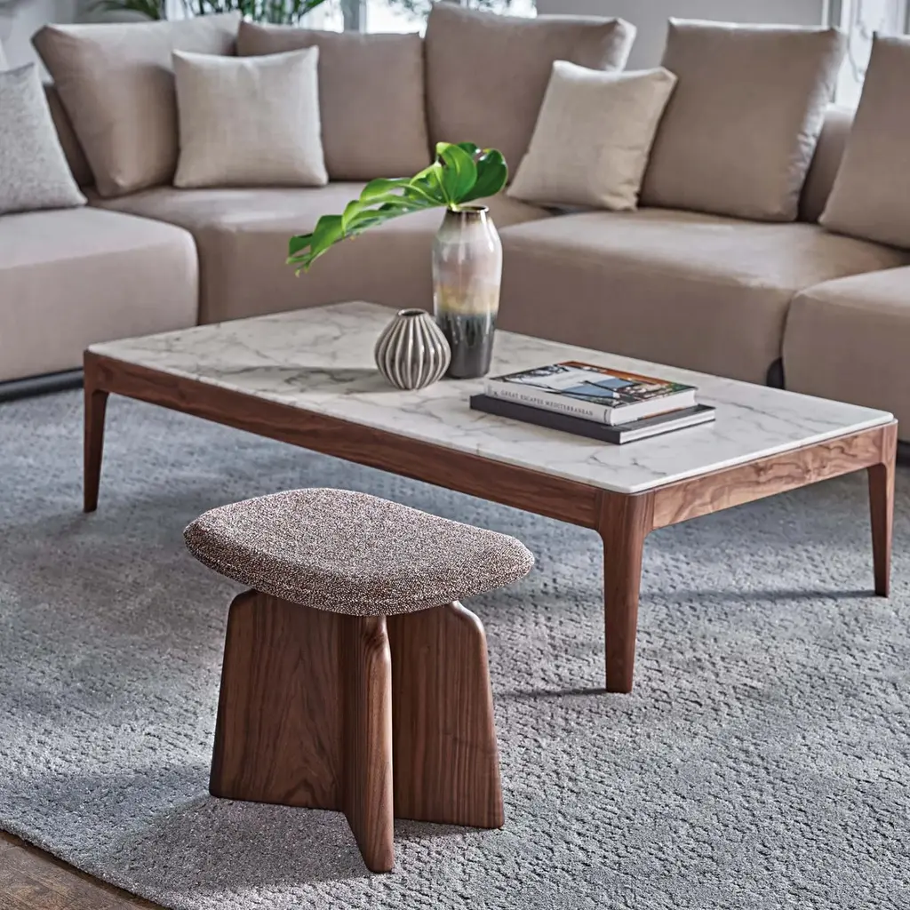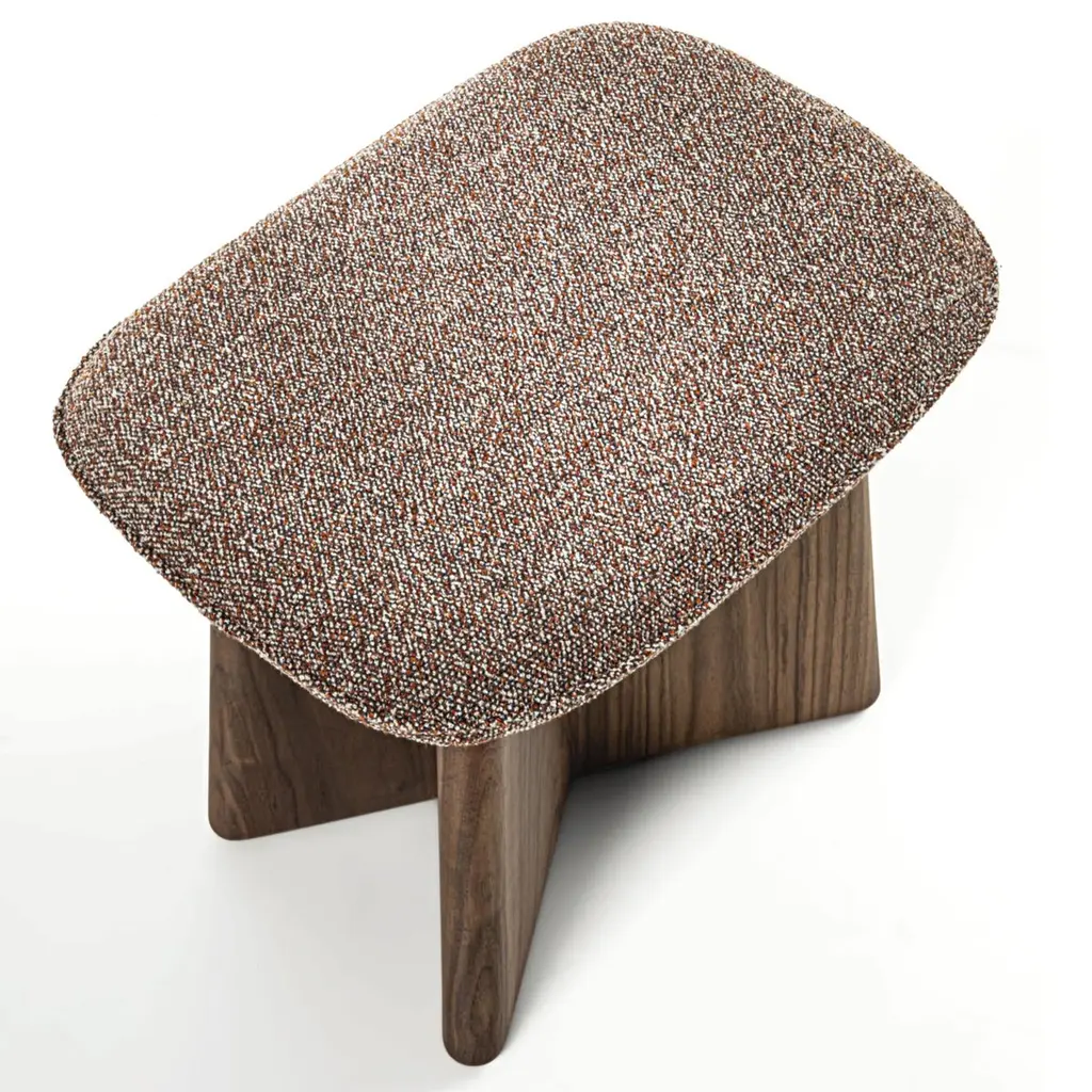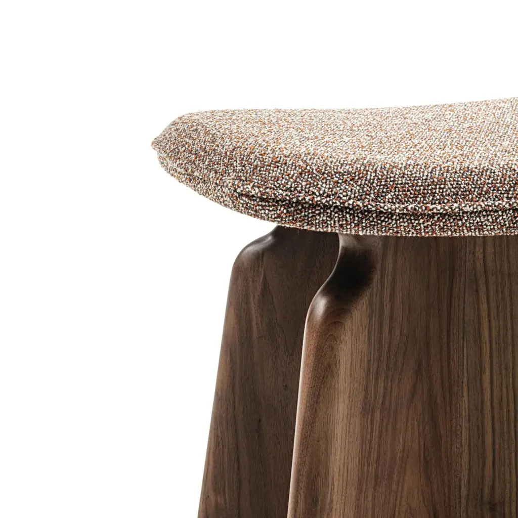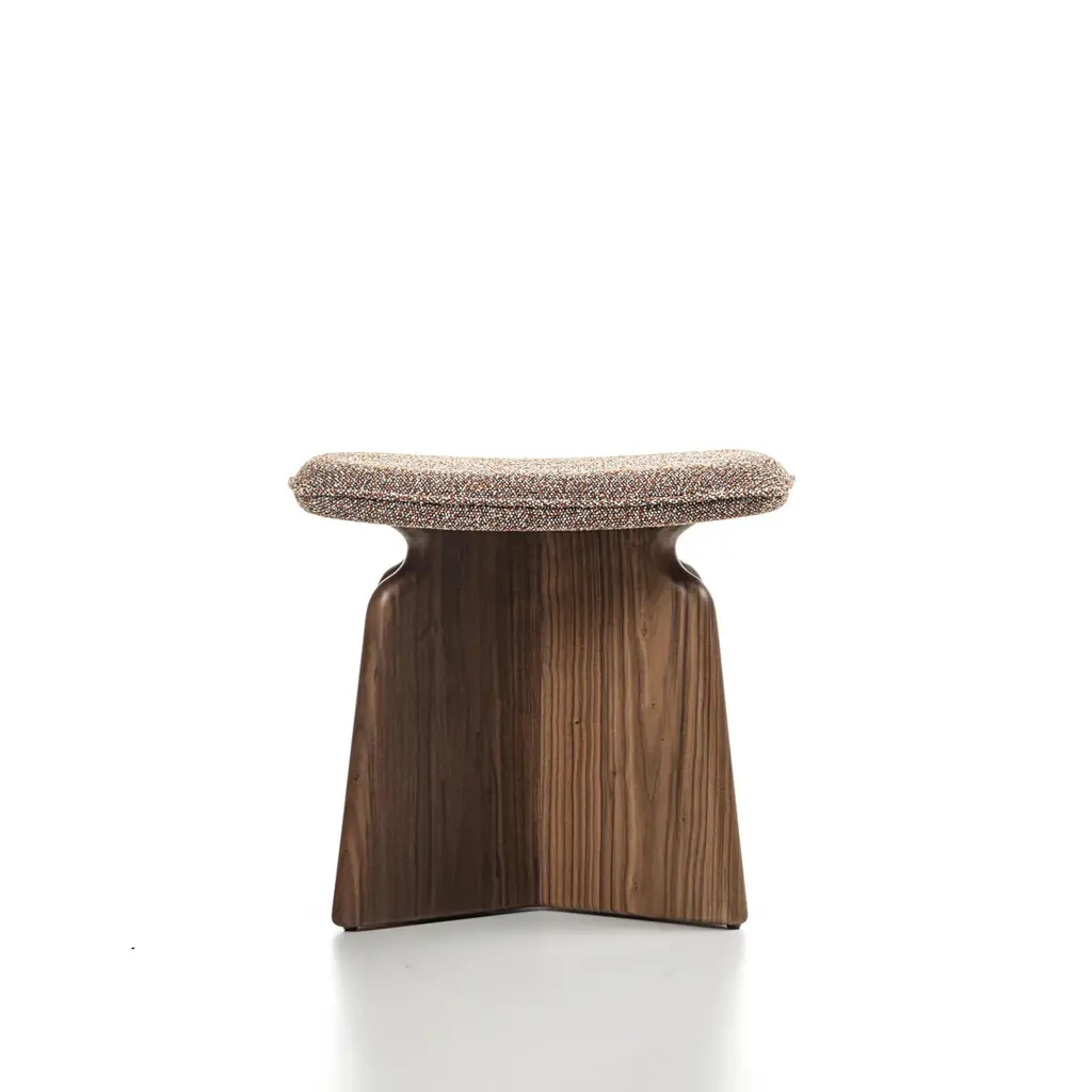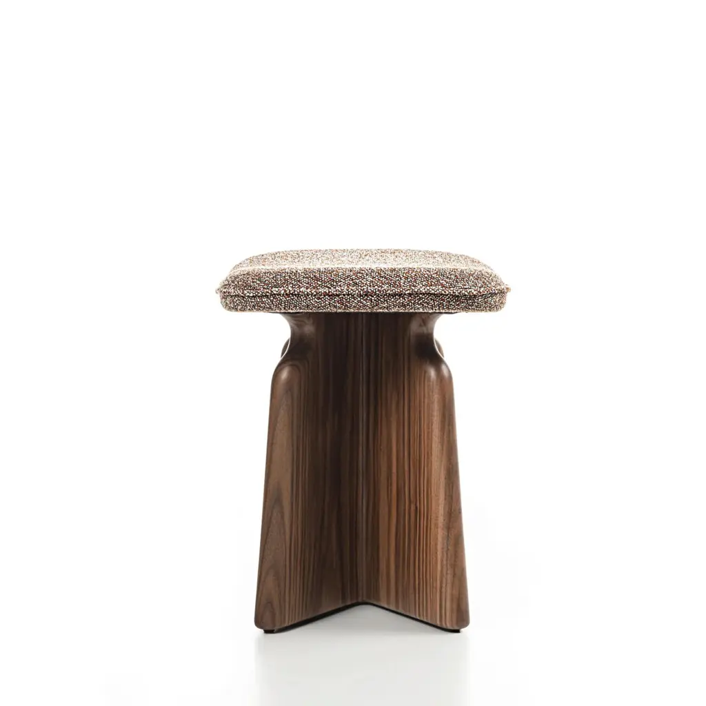 Stool Padem Walnut with structure in solid walnut wood,with upholstered and covered seat in fabric (Cat A.)Also available on request with other fabrics.Also available on request in solid walnut in moka stainedfinish or in wenge stained finish.