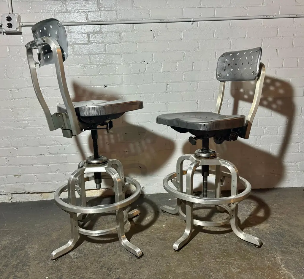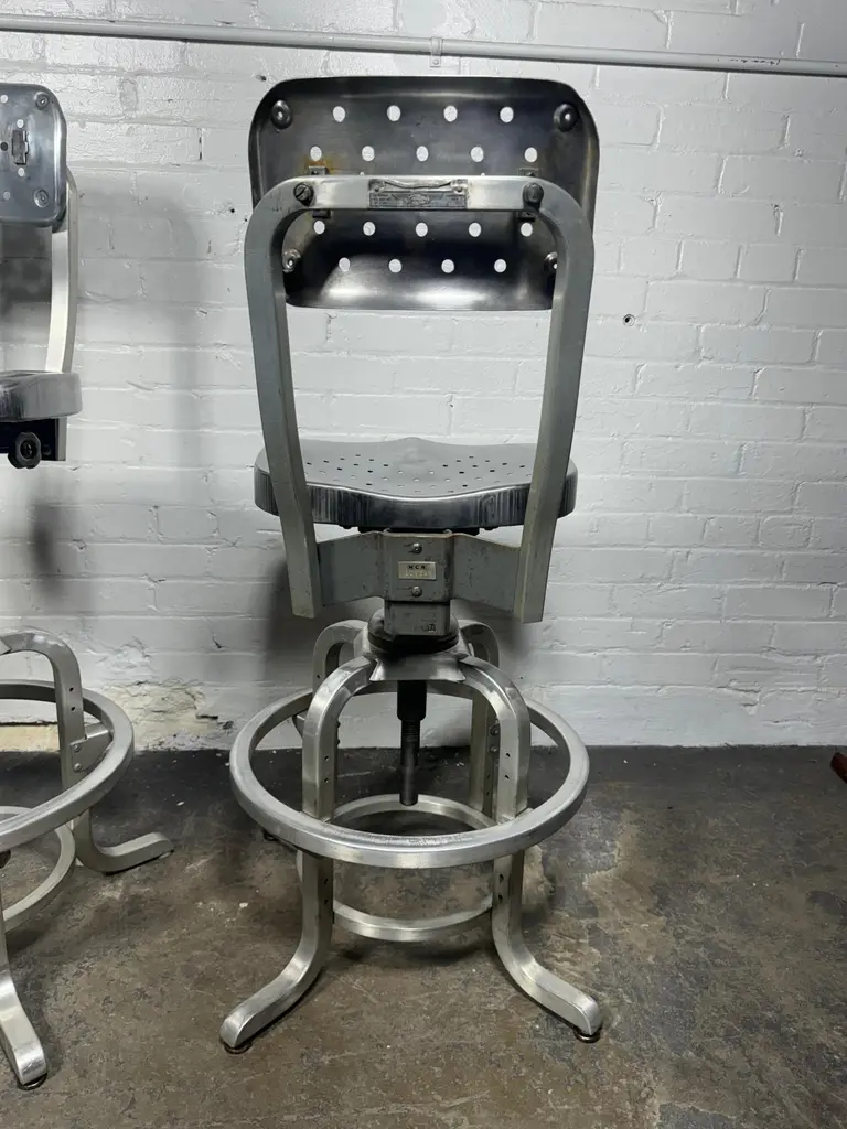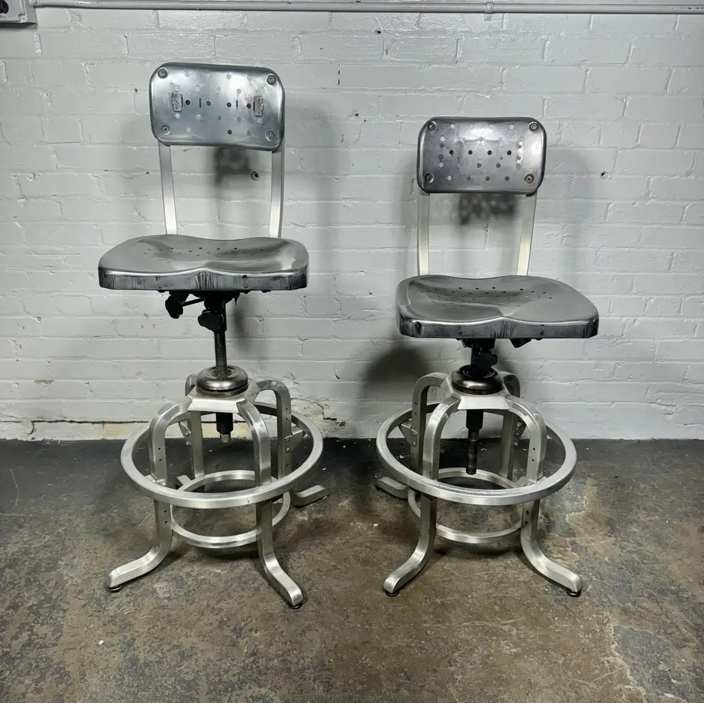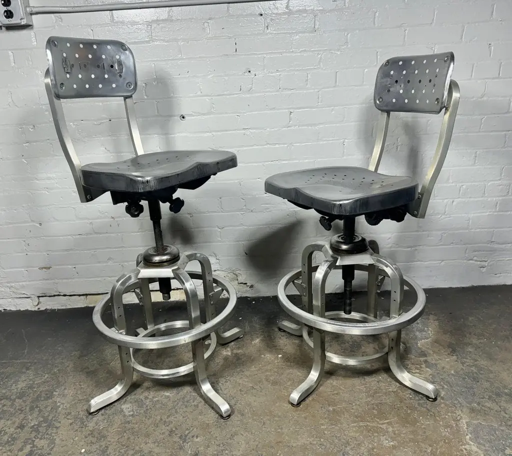 Pair Goodform Industrial Aluminum Adjustable Drafting Stools .Priced Separately