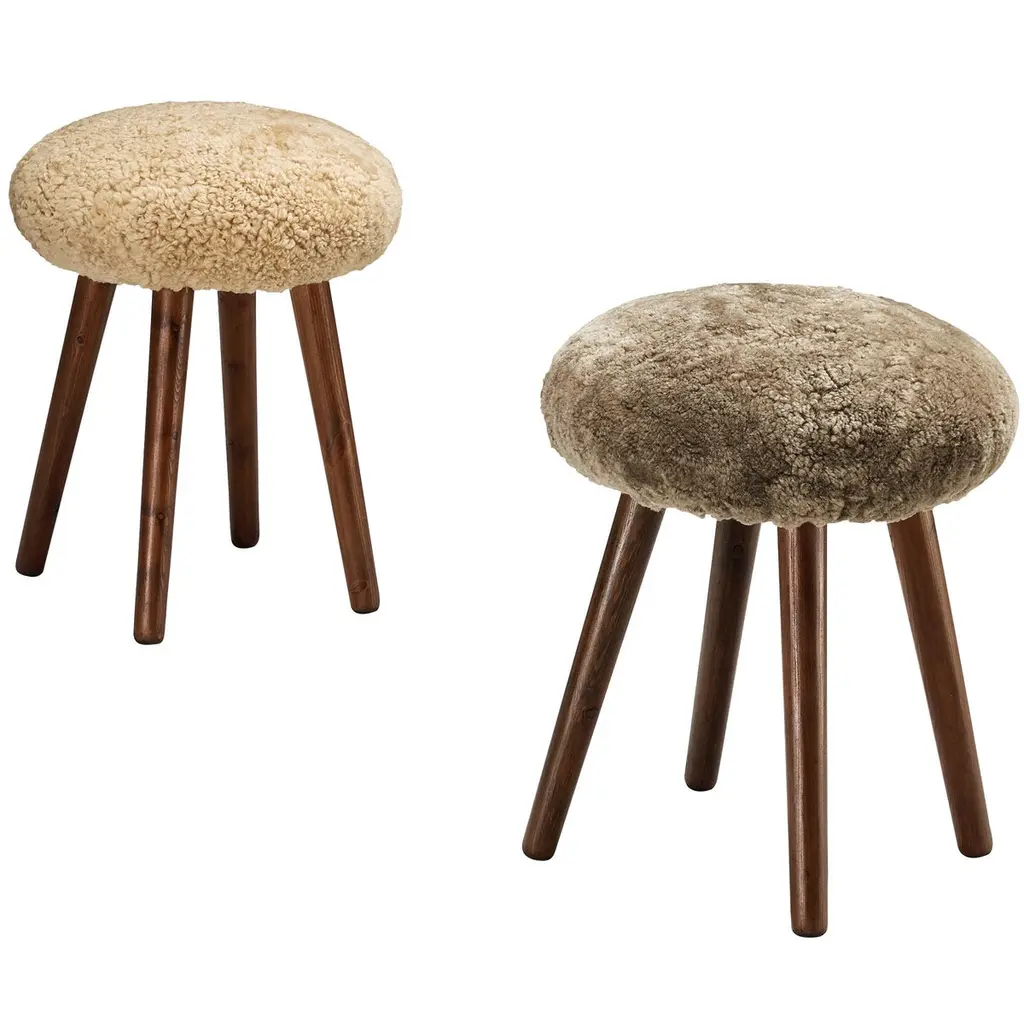 Pair Of Arnold Madsen Sheepskin & Walnut Clam Stools