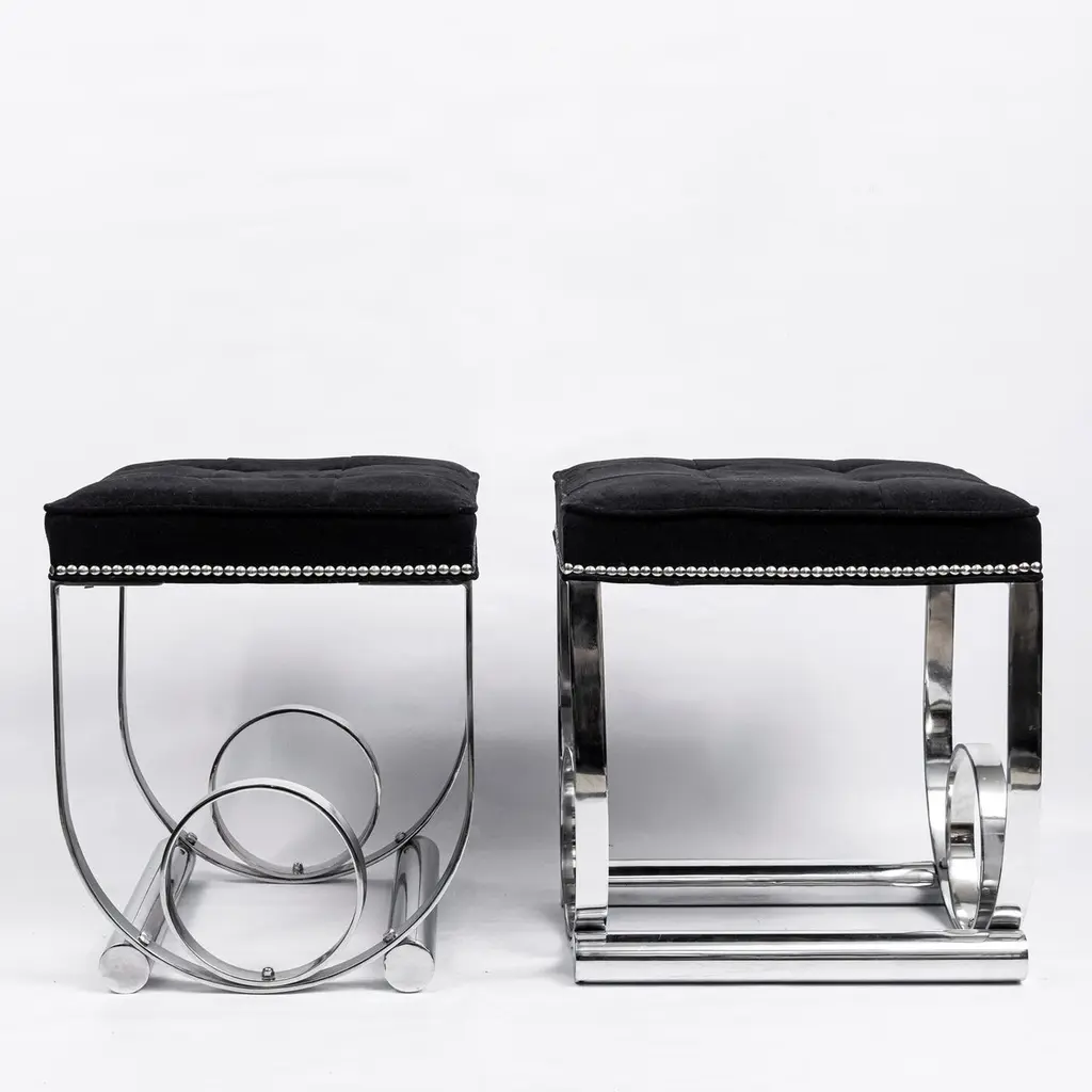 Pair Of Chrome Metal Stools, Art Deco Period, France, Circa 1940