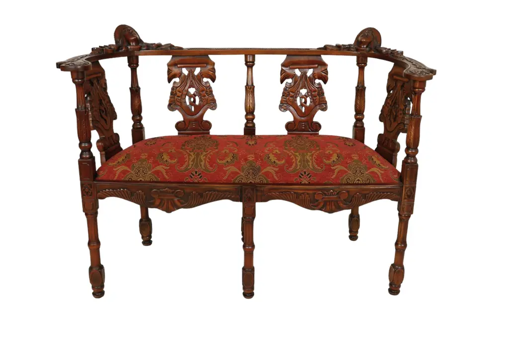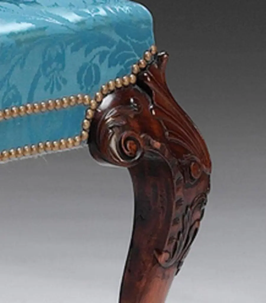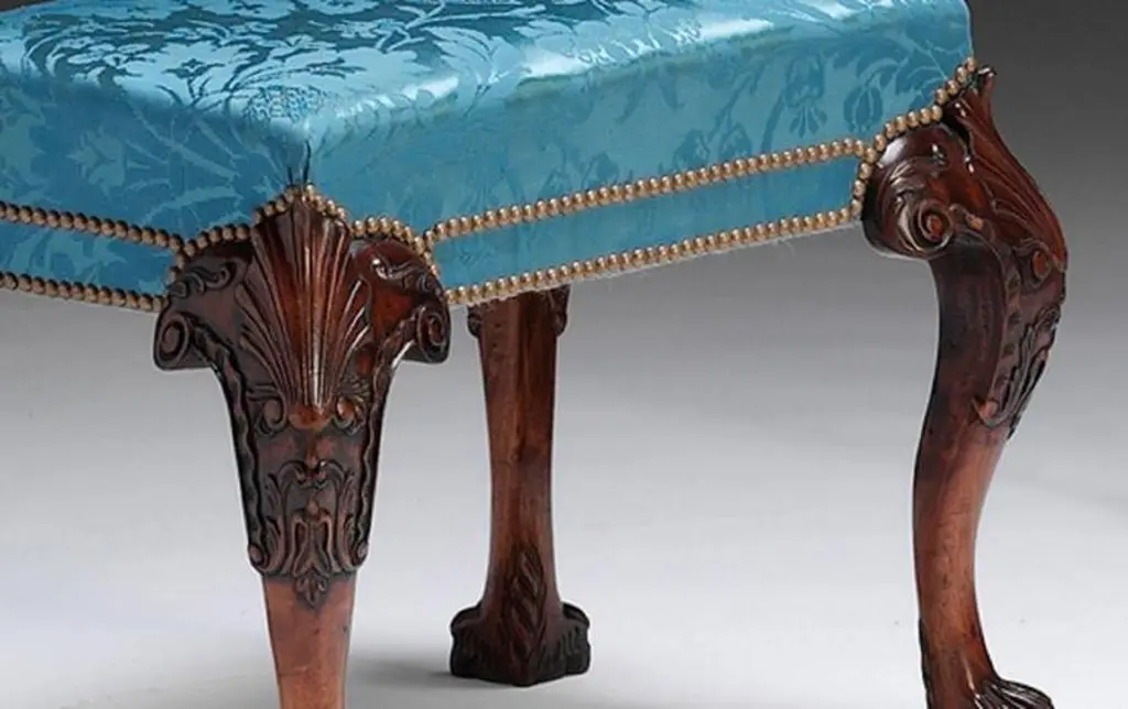 A carved mahogany, upholstered stool in the mid Georgian manner with shell carved knees, acanthus decoration and hairy paw feet.We are currently working to a 30-36 week lead time.