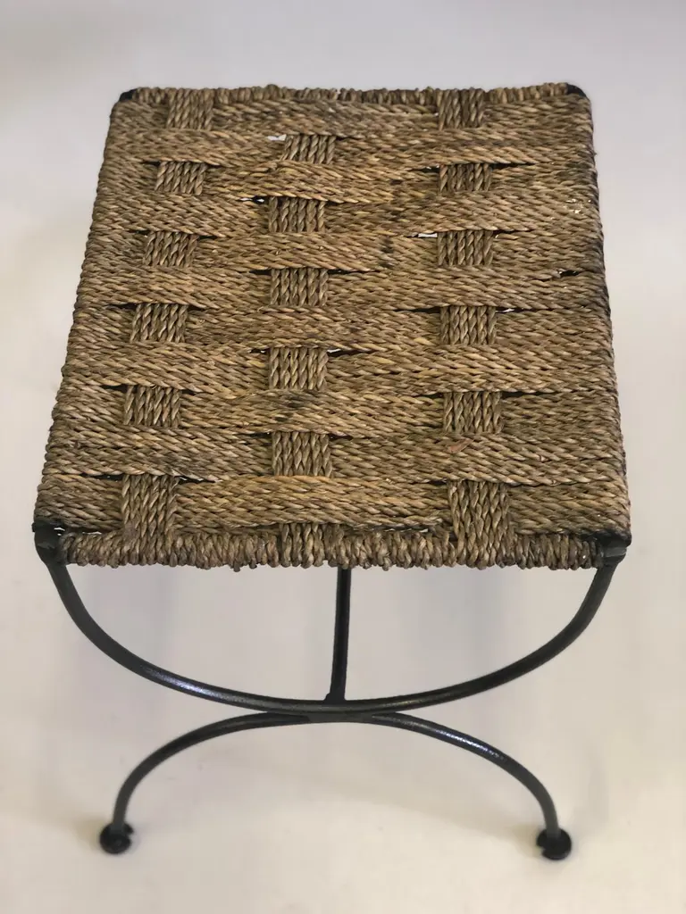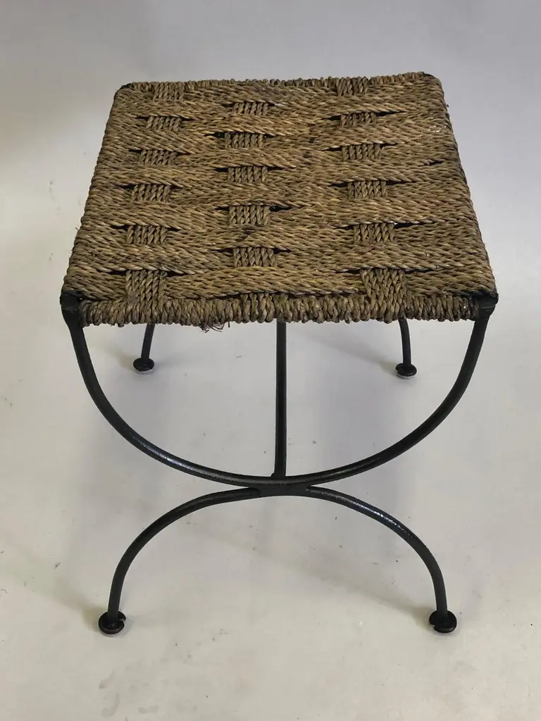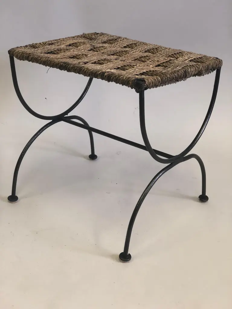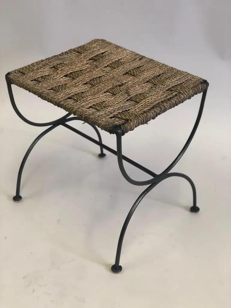 Pair Of French Mid-Century Wrought Iron & Rope Stools / Benches, Audoux & Minet.