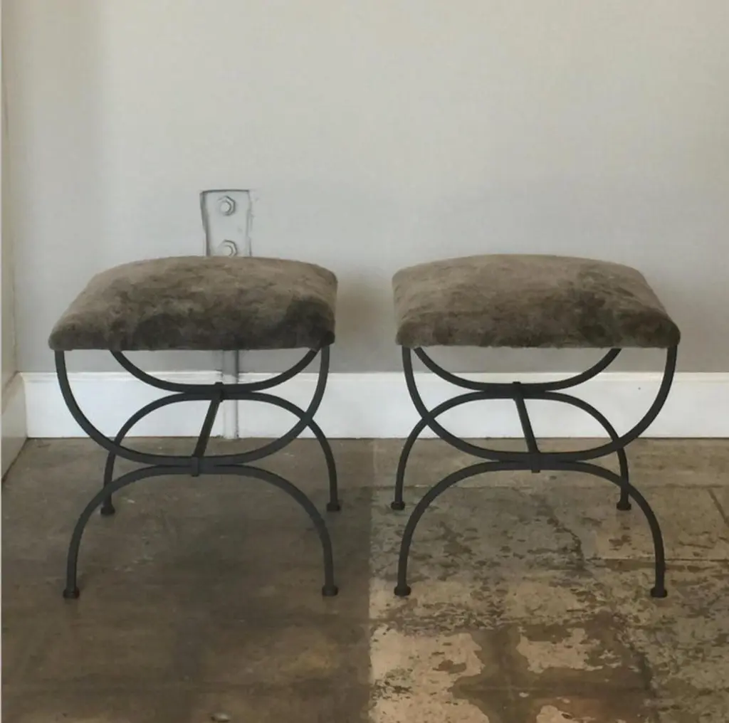 Pair Of Gray Shearling 'Strapontin' Stools By Design Frères