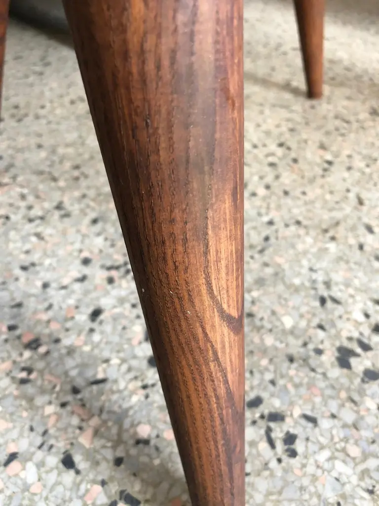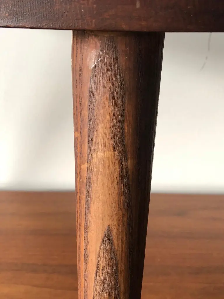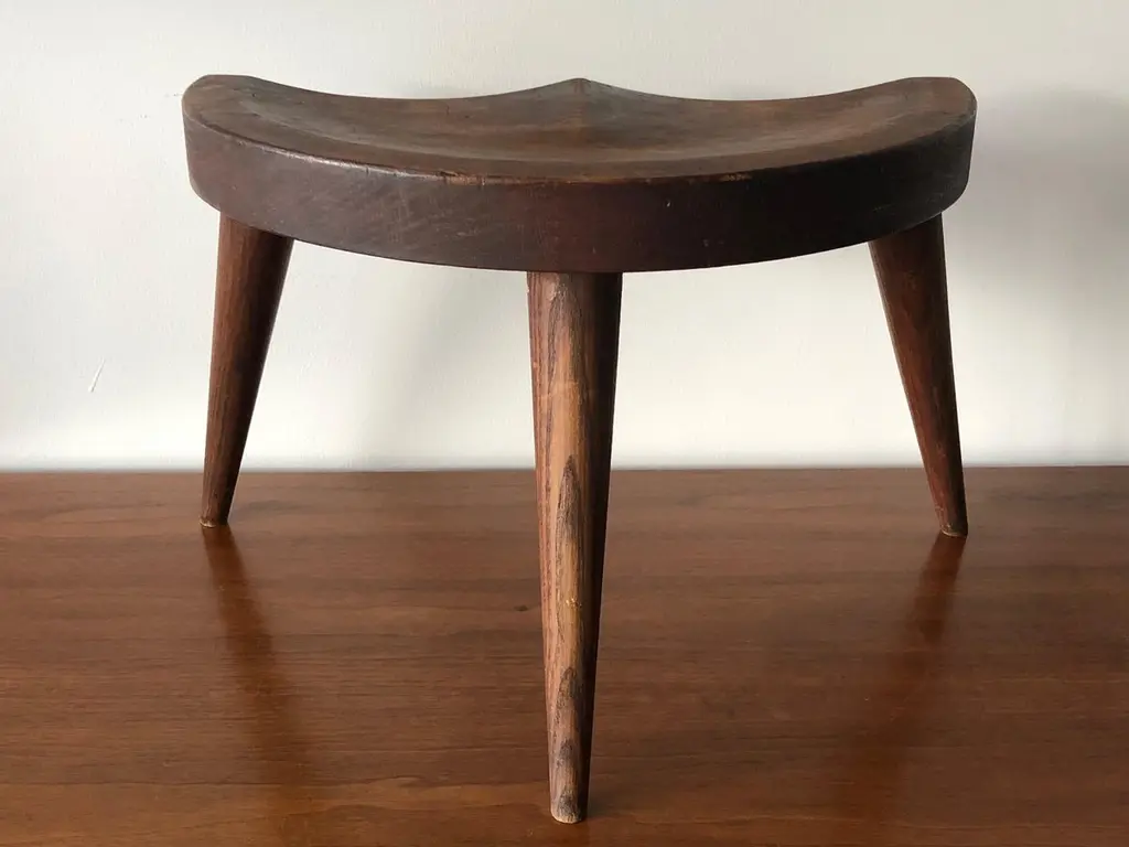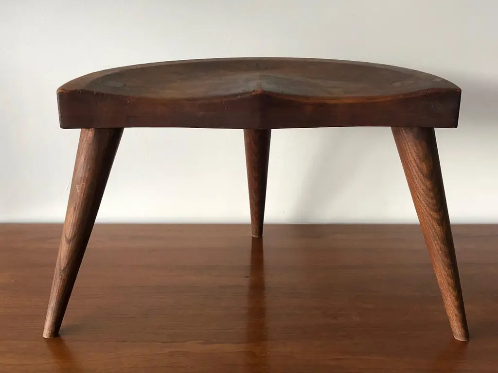 A pair of unusual three legged stools by Arthur Cunningham, Manchester, New Hampshire. Vintage circa 1960s with great patina and character.
