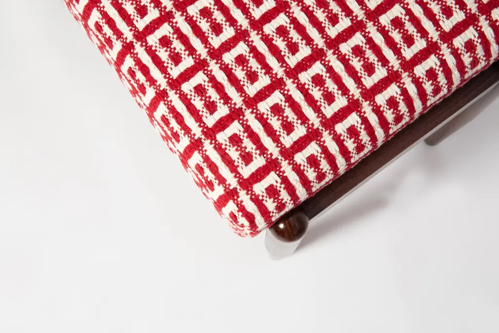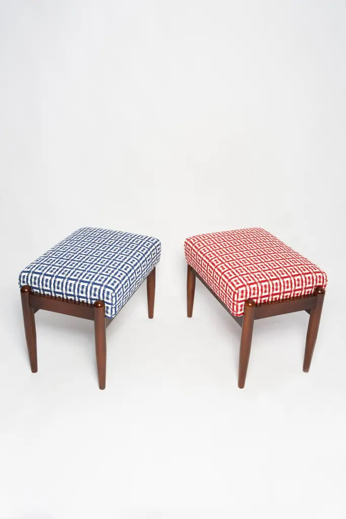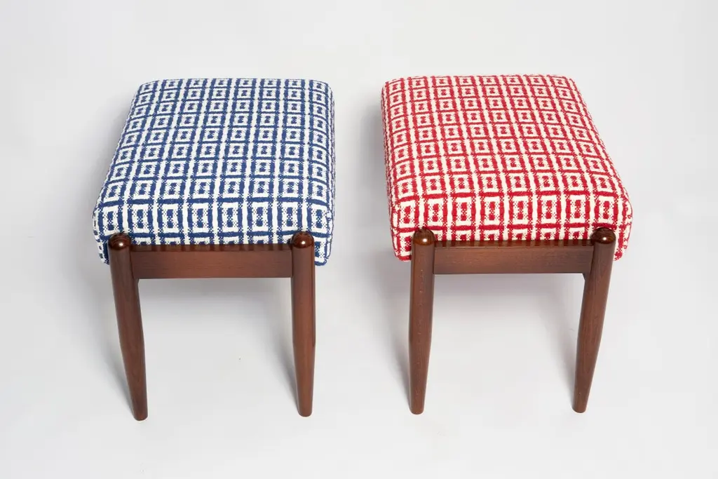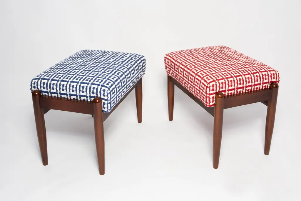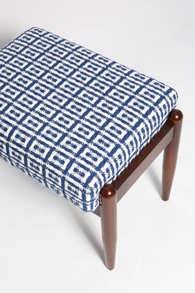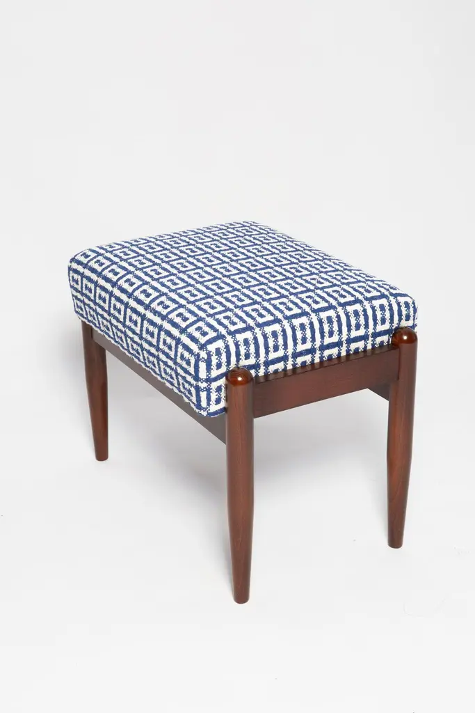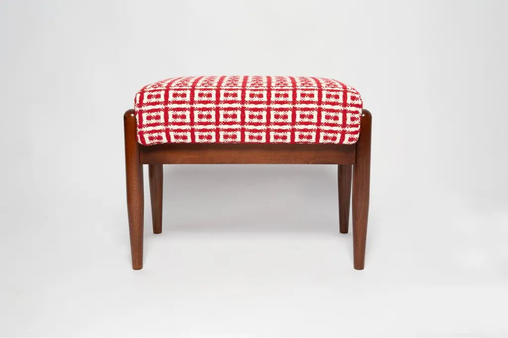 Beautiful stool designed by Edmund Homa. The stool was made in the 1960s in the Gosciecinska Furniture Factory from solid beechwood. The GFM type stool is regarded one of the best polish design from the previous age. The stool have been thoroughly renovated. The tension belts have been changed, new upholstery foams.About upholstery:Hsh Home Sweet Home by DedarA geometric jacquard in regenerated cotton of artisanal vocation and sartorial inspiration. The complex textile construction, veined with gravitas, evokes an intimate and joyful domestic atmosphere, while the recollection of exuberant two-piece suits confers notes of haute couture. In the colour palette, binary colours alternate between ivory and solid classic tones.Composition: 67% Cotton, 19% Polyester, 14% Other fibersMartindale: 50000 cyclesMade in ItalyWe can prepare this stool also in another wood and fabric option.Edmund Homa(born in 1927 in Chojnice, died on 3 April 2017 in Gdynia)interior architect, designer. He studied art at the Academy of Fine Arts in Gdansk, graduated in 1955 from the Faculty of Architecture in the studio of prof. Lech Kadlubowski. From 1952 to 1955, he worked at CBKO No. 1 in Gdansk, in the art design section of the Ship Interior Design Department. He dealt with interior design for m / s "Marceli Nowotko", conventional trawlers type B-14 and B-62 and the first version of the Fishing Base. From 1955, he cooperated with the company "Reklama", Z. S. Spolem and Zaklady Art. he designed the interior of a radio and television showroom in Gdynia, Dom Rzemiosla in Chojnice, a hotel hotel in Zaklady Celulozy i Papieru in Swiecie, Prefabricated Manufacturing Plant in Reda, Zaklady Dziewiarskie in Turek and Zaklady Rybnych in Gdansk. From 1961, he worked in the modeling unit of Fabryka Mebli in Gosciniec and participated in competitions and exhibitions, both in Poland and abroad, related to furniture design. In the years 1978-1982, he was a member of the Artistic Council at the District Board of the Union of Polish Artists and Designers in Gdansk. Appraiser of the Minister of Culture and Art for the evaluation of art projects.