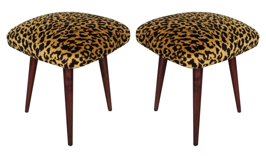 Pair Of Mid Century Leopard Velvet Stools, Europe, 1960s