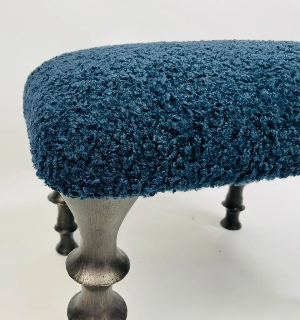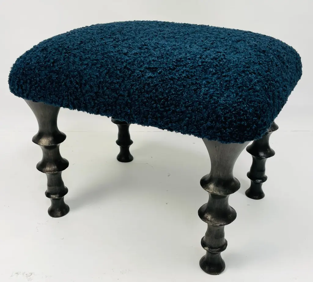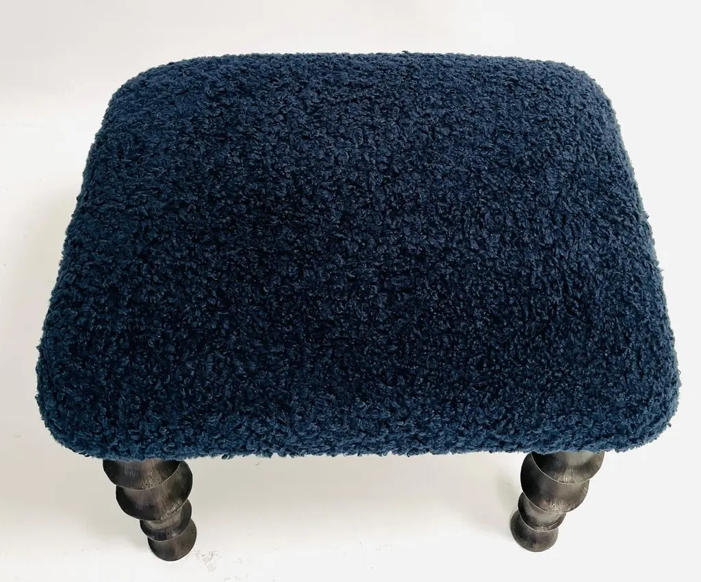 Pair Of Midnight Blue Bouclé St Paul Stool