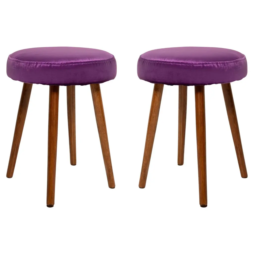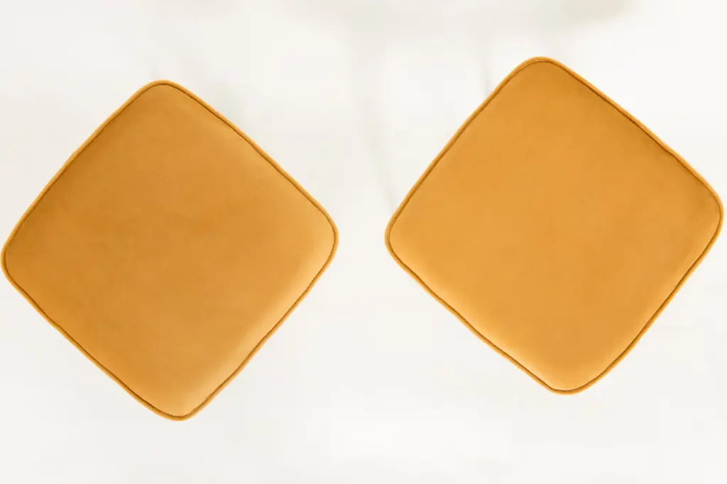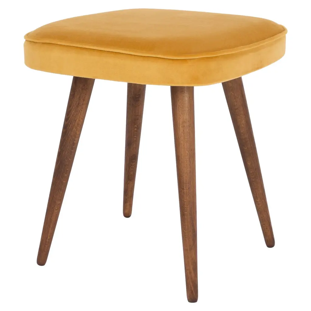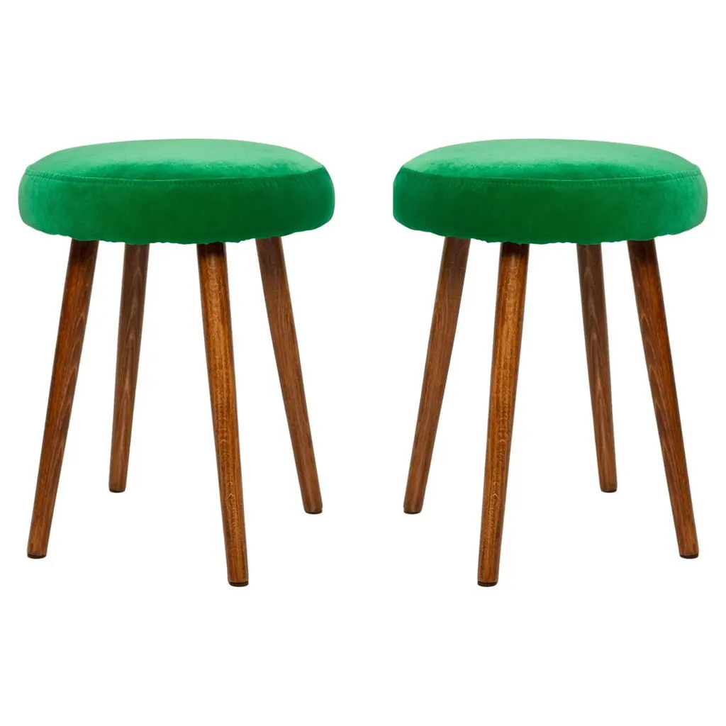 Stools from the turn of the 1960s and 1970s. Beautiful mustard velor upholstery. The stools consists of an upholstered part, a seat and wooden legs narrowing downwards, characteristic of the 1960s style. We can prepare this pair also in another color of fabric and wood.