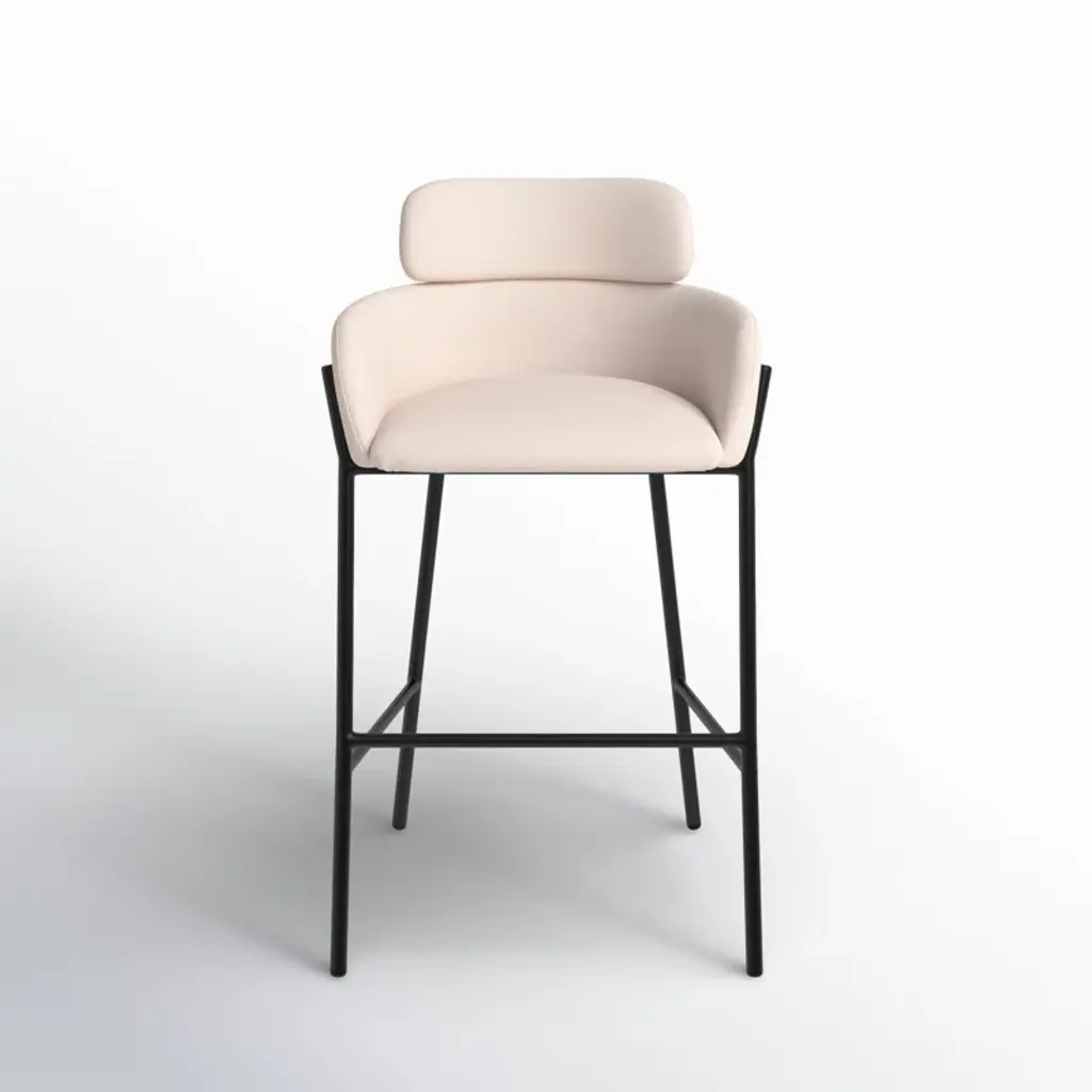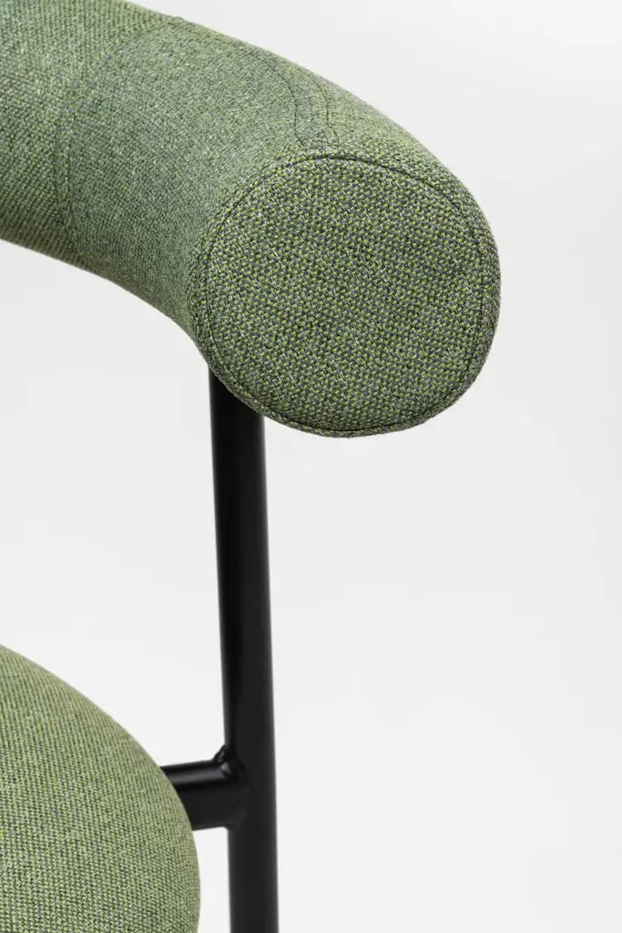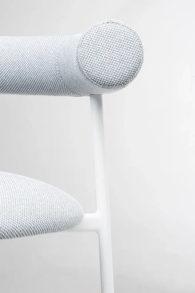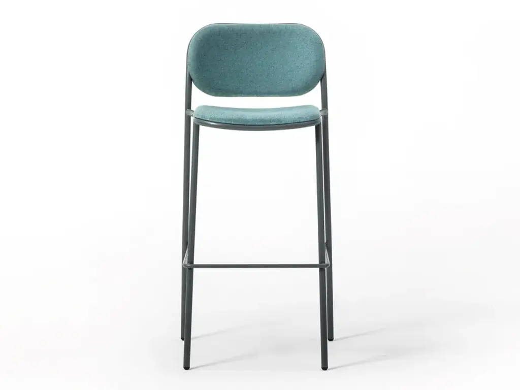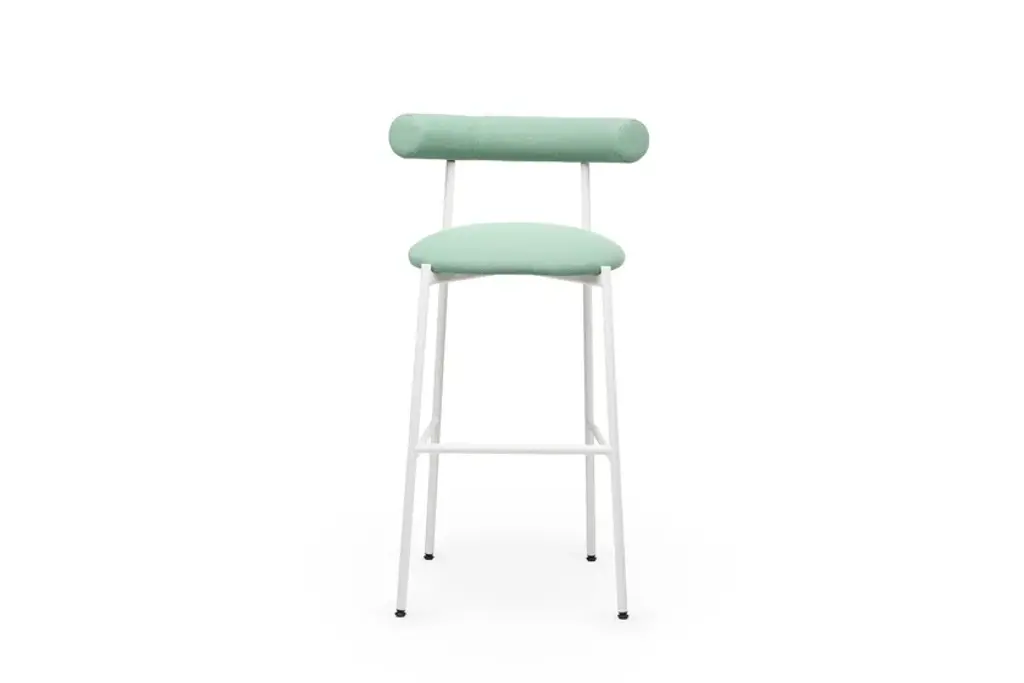 Pampa SG-80 is a high stool in black, white or brick powder-coated steel frame. Upholstered seat and back with recycled fabric.Gleefully extravagant in its proportions, Pampa is a collection of chairs and stools with an unusual and delicate charm. Welcoming in the oversized design of the upholstered backrest, combined with a thin metal structure and a soft seat, the Pampa chairs interpret the needs of any environment with imagination and delicacy. Linearity and iconography come together in a game of proportions. The filiform harmony of the structure is unbalanced by a rounded and generous back which becomes the distinctive element of the collection. The result is a series of iconic and vaguely extravagant seats that evoke the fascinating graphic signs of rock paintngs and frescoes of ancient Mediterranean civilizatons. With its welcoming shapes, its contemporary profile and colored upholstery in recycled fiber fabrics, the Pampa collecton is dedicated to comfort in every scenario of contemporary living.