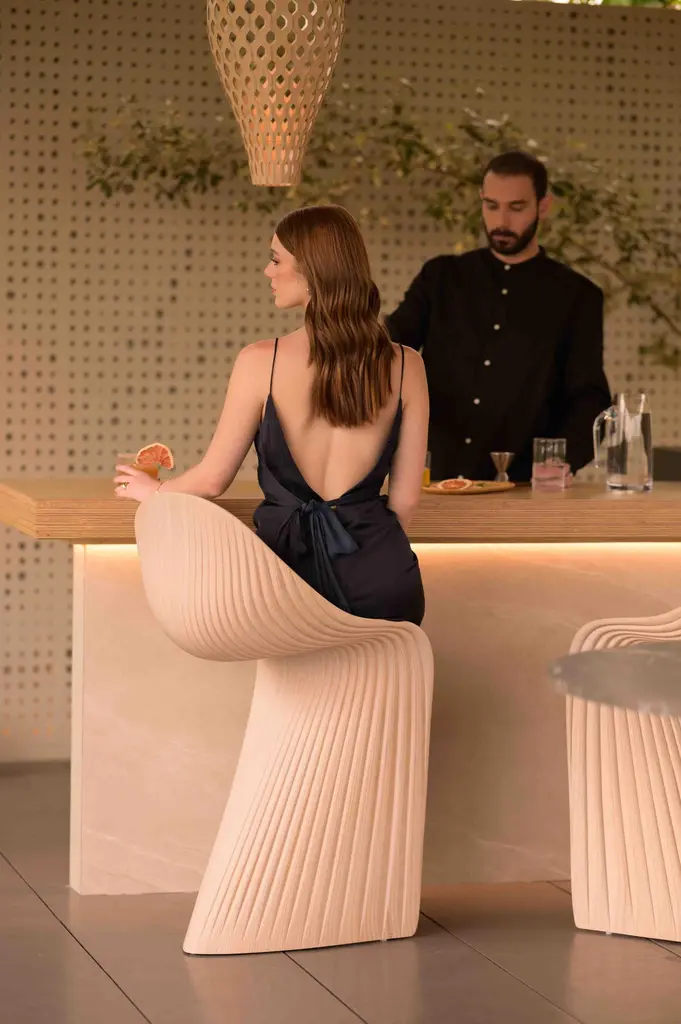 The "Papagayo" Stool features a sleek and modern design, with clean lines and a minimalist silhouette that effortlessly complements any interior decor. The 30 vertical sections of laminated wood are carefully arranged to create a dynamic visual effect, while the sturdy construction ensures stability and support.Crafted from high-quality birch and spruce wood, the "Papagayo" Stool showcases the natural beauty and durability of these materials. The laminated wood sections are expertly joined together to form a seamless and sturdy structure, providing a solid foundation for comfortable seating.In addition to its aesthetic appeal, the "Papagayo" Stool is designed with practicality in mind. Its ergonomic shape and comfortable seating surface make it perfect for everyday use, while its durable construction ensures long-lasting durability and reliability.