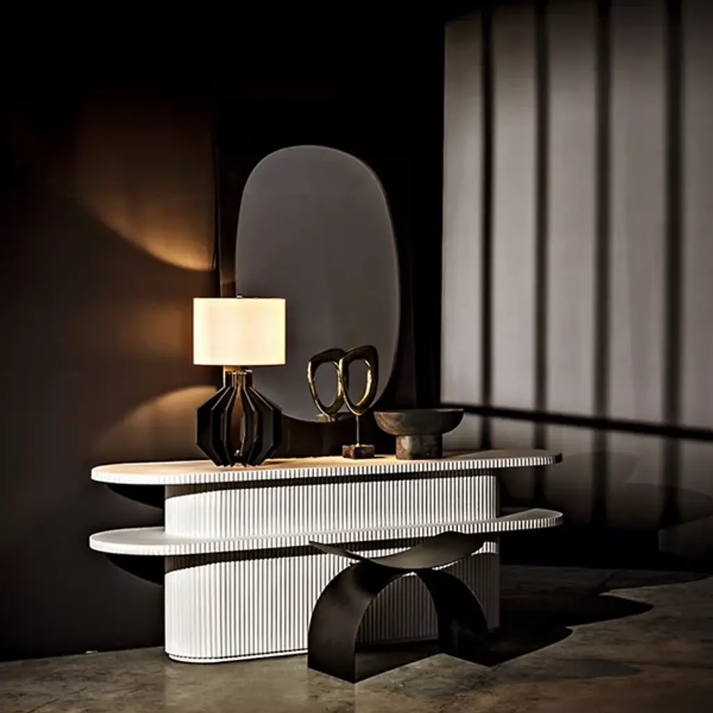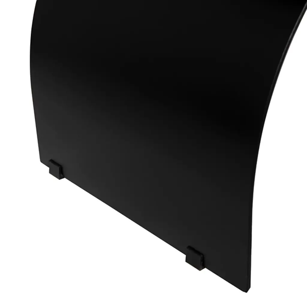 The Papillon Stool from Noir achieves sculptural yet minimalist seating through its butterfly-inspired, curved steel form, which creates graceful arcs between the seat and the floor. The matte black finish unifies each flowing element while emphasizing the piece's kinetic quality. Two curved supports mirror each other to form the base structure, creating a visual lightness despite the solid steel construction. This pared-down approach transforms functional seating into an artistic statement through careful attention to curve and proportion.