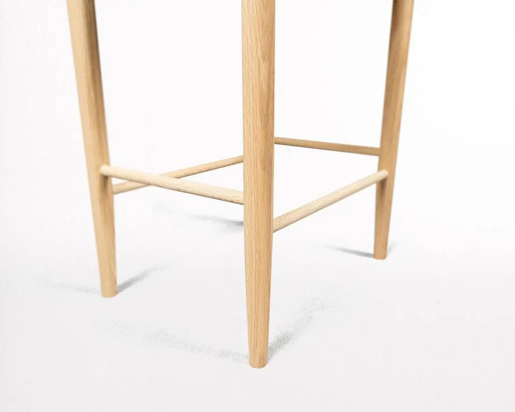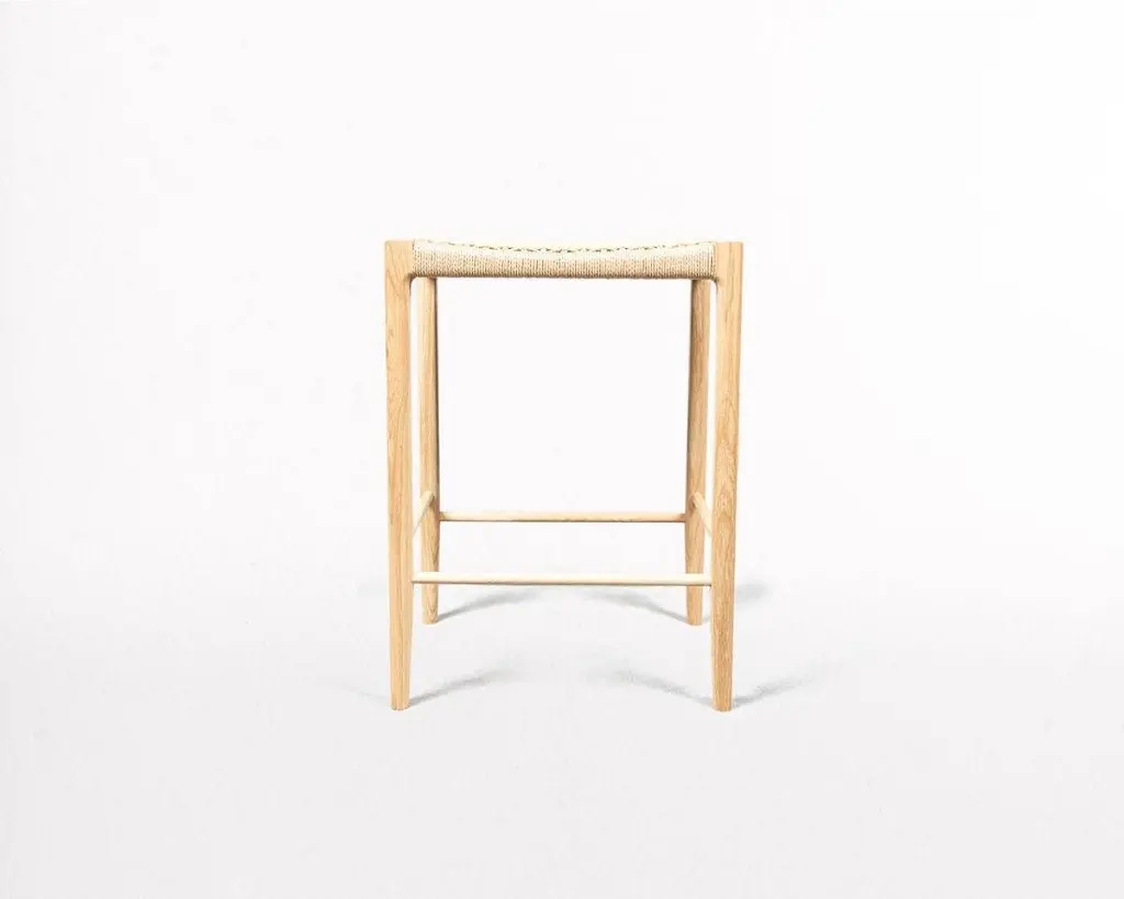 Featuring a mortice and tenon frame and handwoven seat, the Papyri Stool is artisan-crafted from recyclable paper cord, and sustainably harvested white oak.The seat features a continuous run of Danish paper cord woven around "L Shaped Nails" in a traditional binder-cane method of warped pairs. The stool frame is constructed with floating tenon joinery and each leg is hand-sculpted with spoke shave and file for flowing transition between frame and seat. Each stool is made to order and finished with a 100% plant-based, hardwax-oil.
