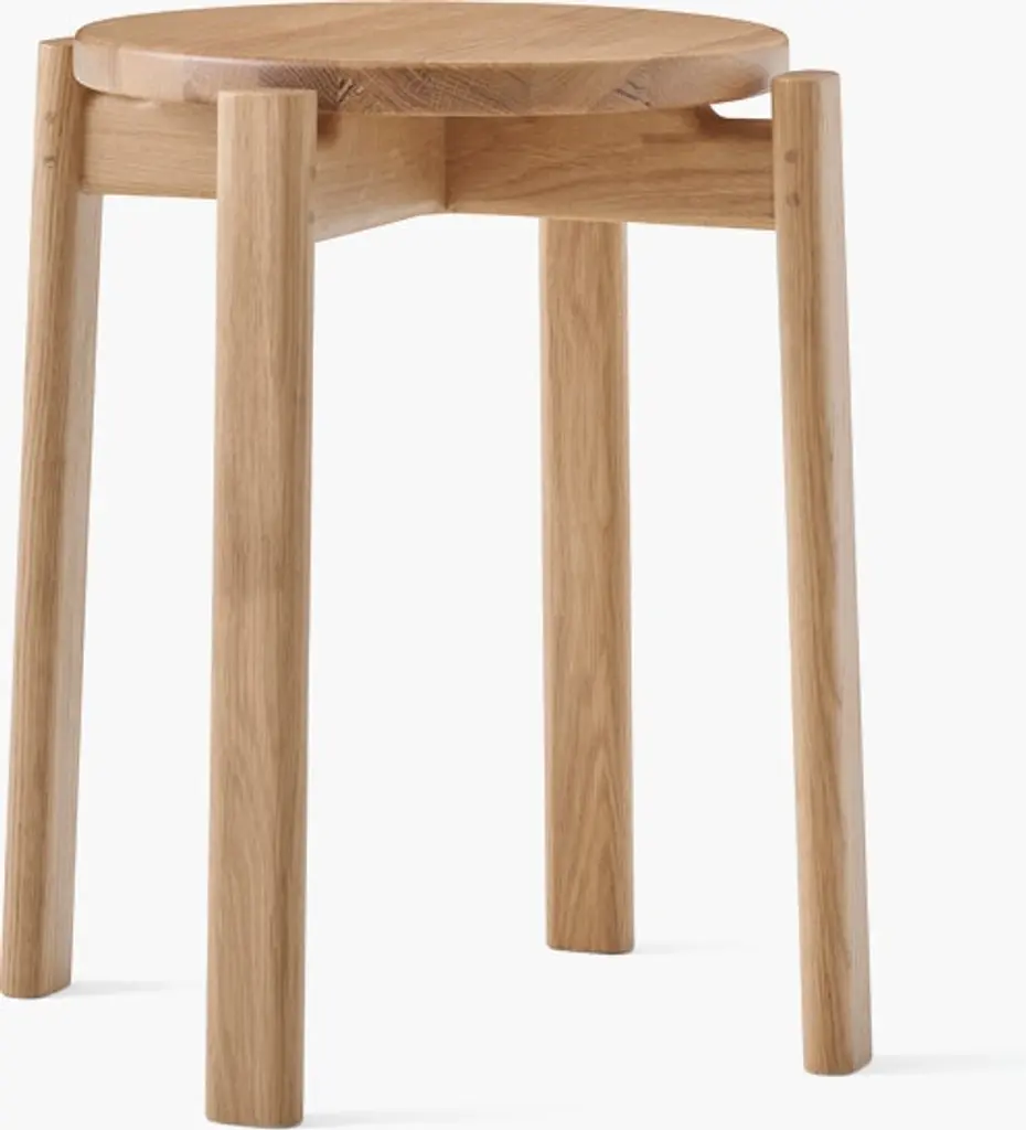 Carefully crafted with all the hallmarks of great joinery, the Passage Stool in FSC-certified solid oak is marked by an organic silhouette for a warm aesthetic that's inviting to the touch. It features a base with legs that rest outside the top for an interesting look. This flexible piece can be used as a seat or side table throughout the home - at the dining table and office desk or in the living room, bedroom, or bathroom. Stacks when not in use to save valuable space. Made in Slovenia.