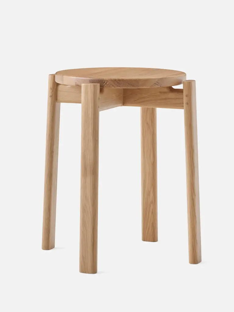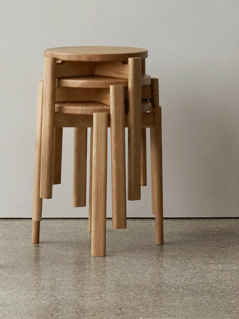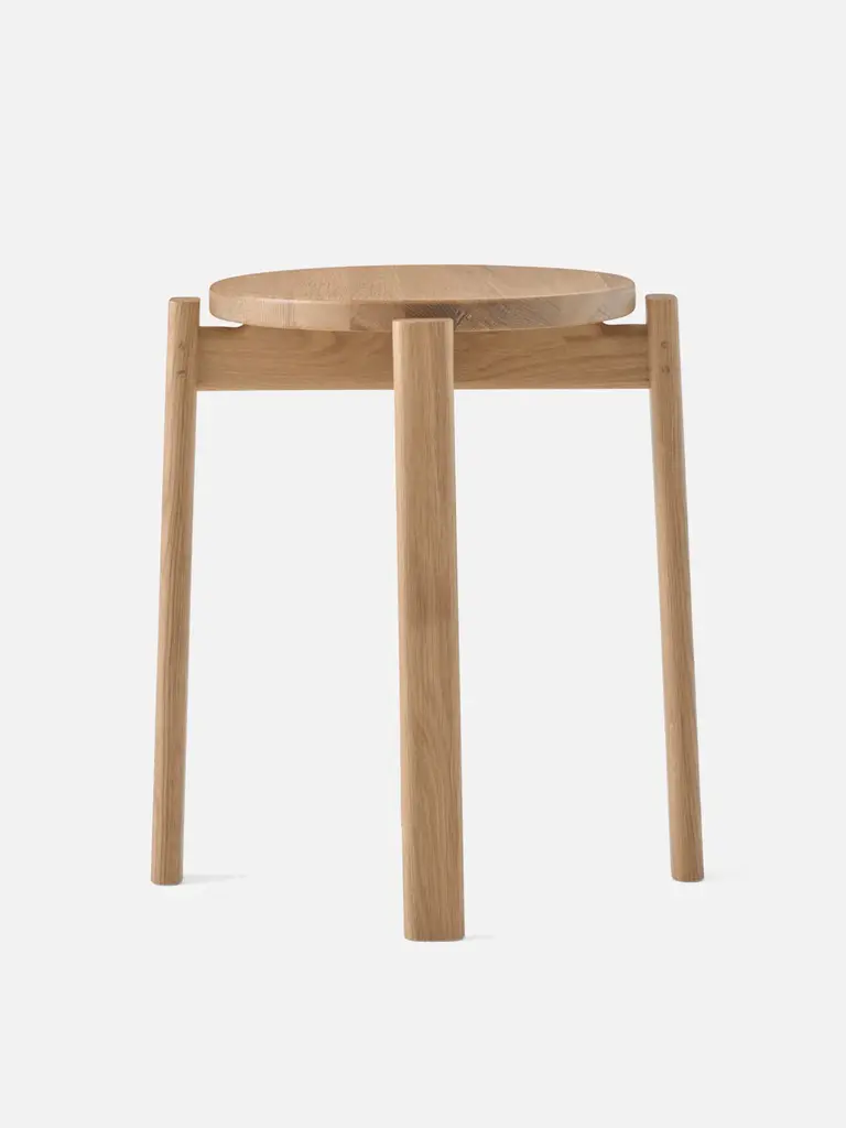 Carefully crafted with all the hallmarks of great carpentry, the Passage Stool in solid walnut or FSC™-certified solid oak with a lacquered finish has a warm expression and an organic silhouette that invite to touch. Devised as a flatpack for quick and easy self-assembly, connecting the user to the design, the versatile piece can be used anywhere where an extra seat is required – at the dining table, office desk, or even as a side table or landing place for clothing in a bedroom or bathroom – and multiples can be stacked together when not in use.