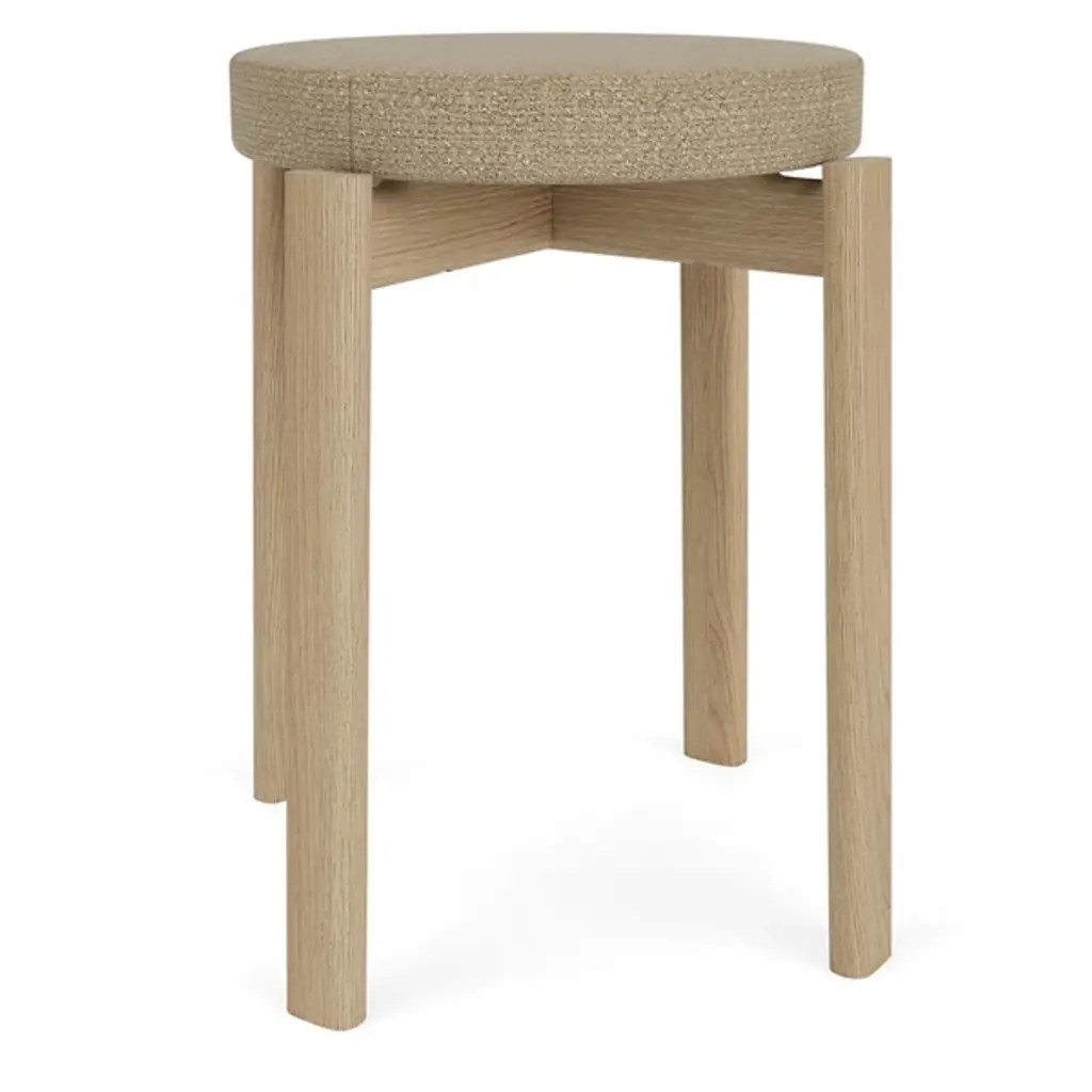 The Passage Upholstered Stool from Audo Copenhagen is designed by Kroyer-Saetter-Lassen. It offers a high-quality product with meticulous attention to detail and a stackable formation, showcasing a commitment to comfort and style. With a crafting technique rooted in traditional woodworking, this product is made out of CNC-cut solid wood that presents unique grain patterns and warm aesthetics. The upholstery and fabric are perfectly formed to provide a comfortable seating experience for long periods of time.