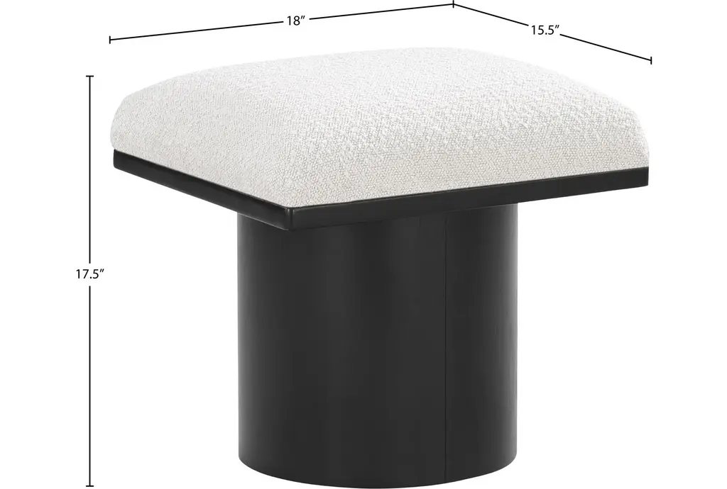 The Pavilion Cream Boucle Fabric Upholstered Bench/Stool with Black Finish is a stylish and modern addition to any space. Its rich cream boucle fabric and sleek black finish create a sophisticated look, while the 4" seat cushion thickness ensures comfort. This rectangular bench/stool is perfect for adding a touch of elegance to your home.
