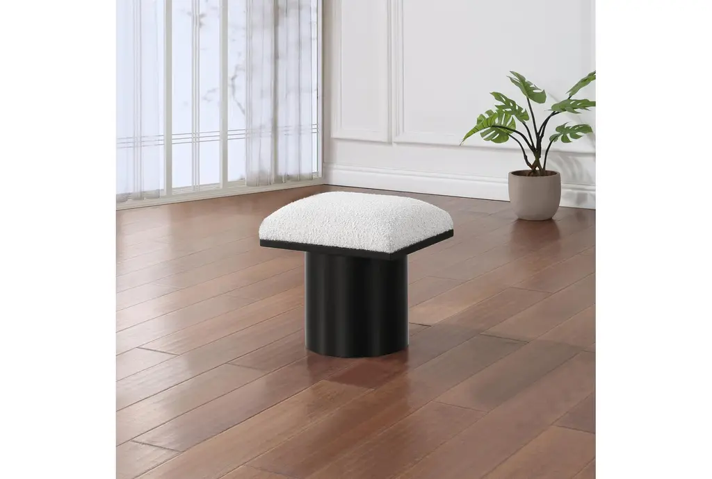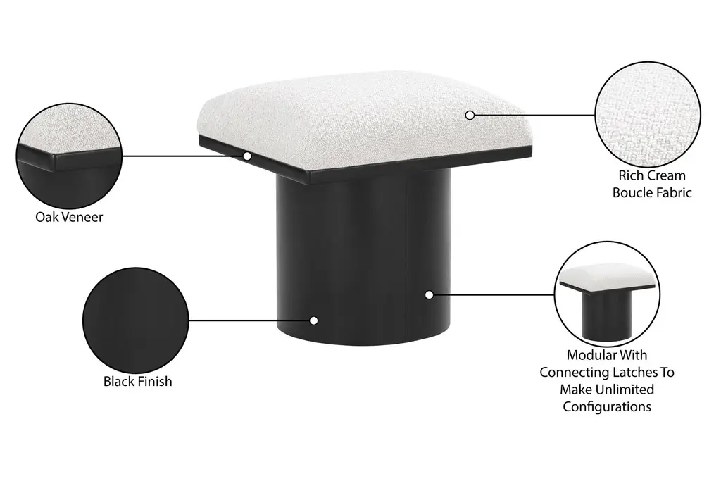 Pavilion Cream Boucle Fabric Upholstered Rectangle Bench/stool | Black Finish | Entryway