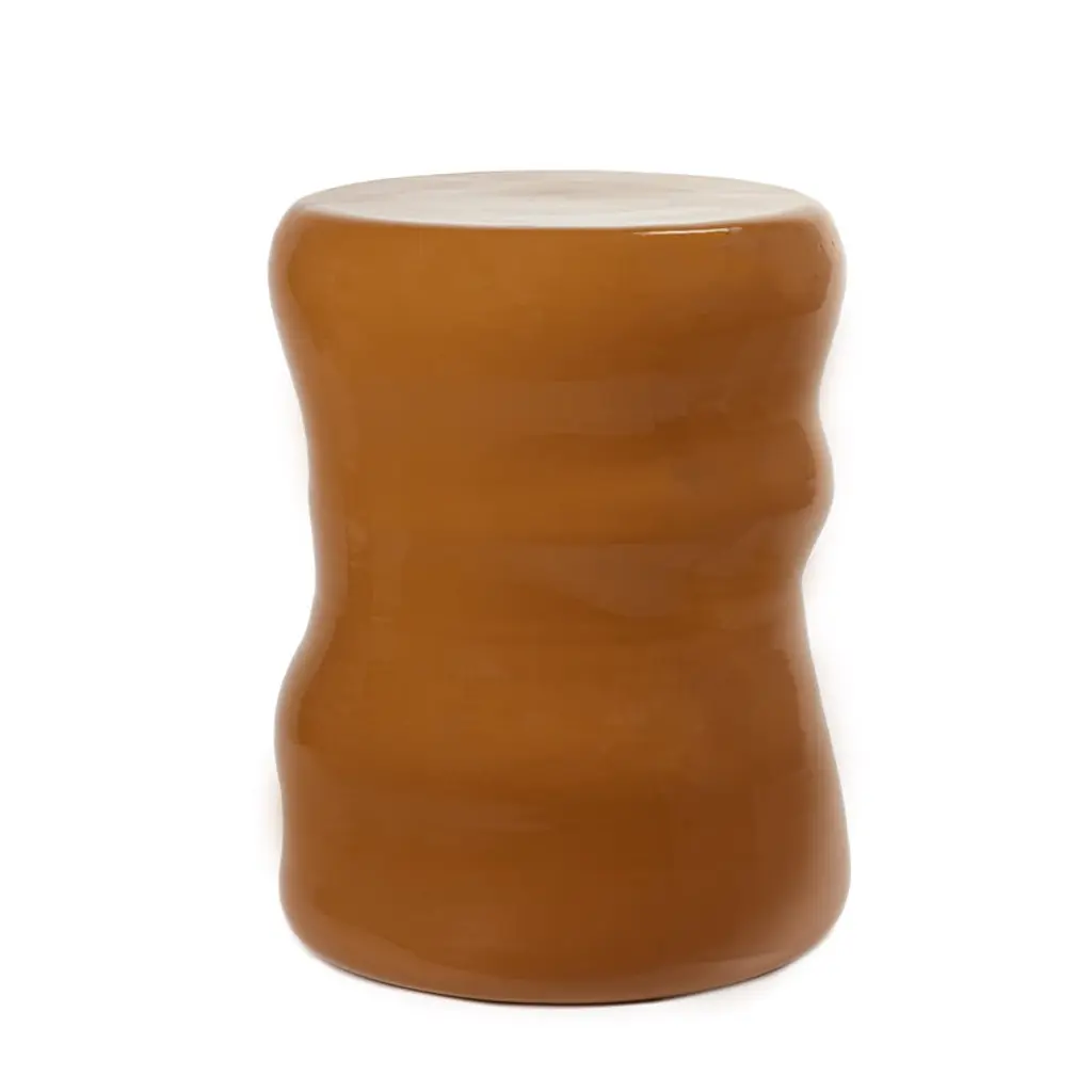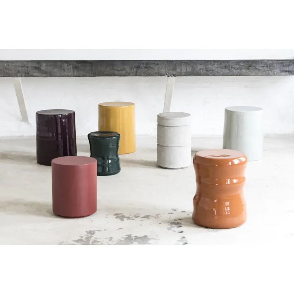 Serax's Pawn Organic is a stoneware stool that can also function as a side table. Its strong material presence is accentuated by a glossy glaze and undulating shape. Pawn by Serax is a multifunctional collection of stools and side tables, designed by Belgian Marie Michielssen. The designer wanted to play with different colors, materials and geometric shapes to create a collection that is decidedly mismatched. Nevertheless, all Pawn products go together seamlessly and can be arranged in groups, each piece playing a double role as a stool or a side table. Pawn can be placed as a nightstand in the bedroom, a small side table next to the sofa or a stool around the dining table.