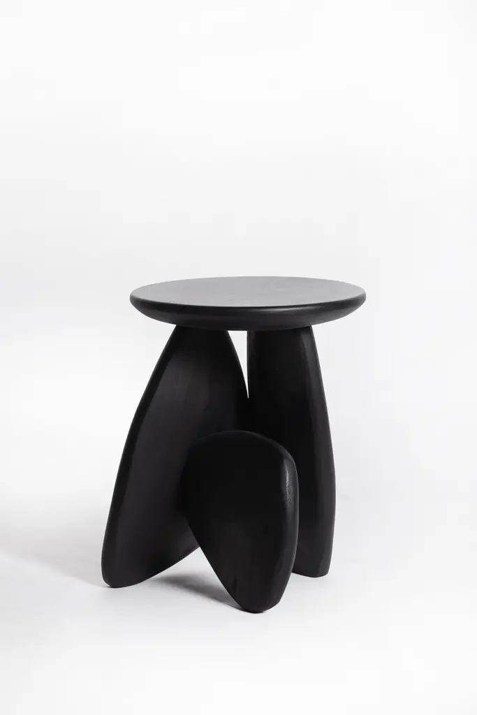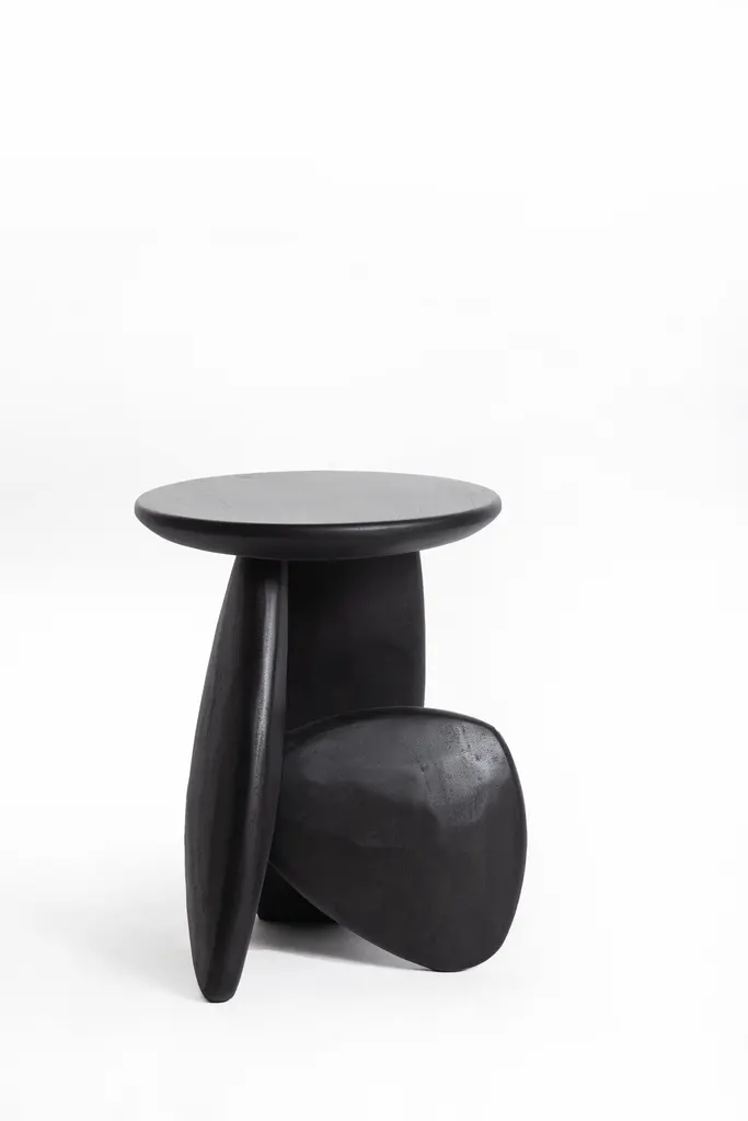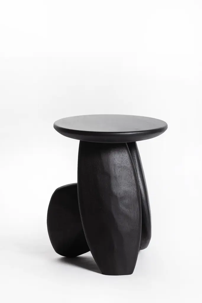 Pebble Stool Type 01, Charcoal Black Monkey Pod Wood